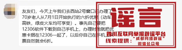 谣言:中国铁路发文明确自7月1日起,60岁以上老人购票有优惠?