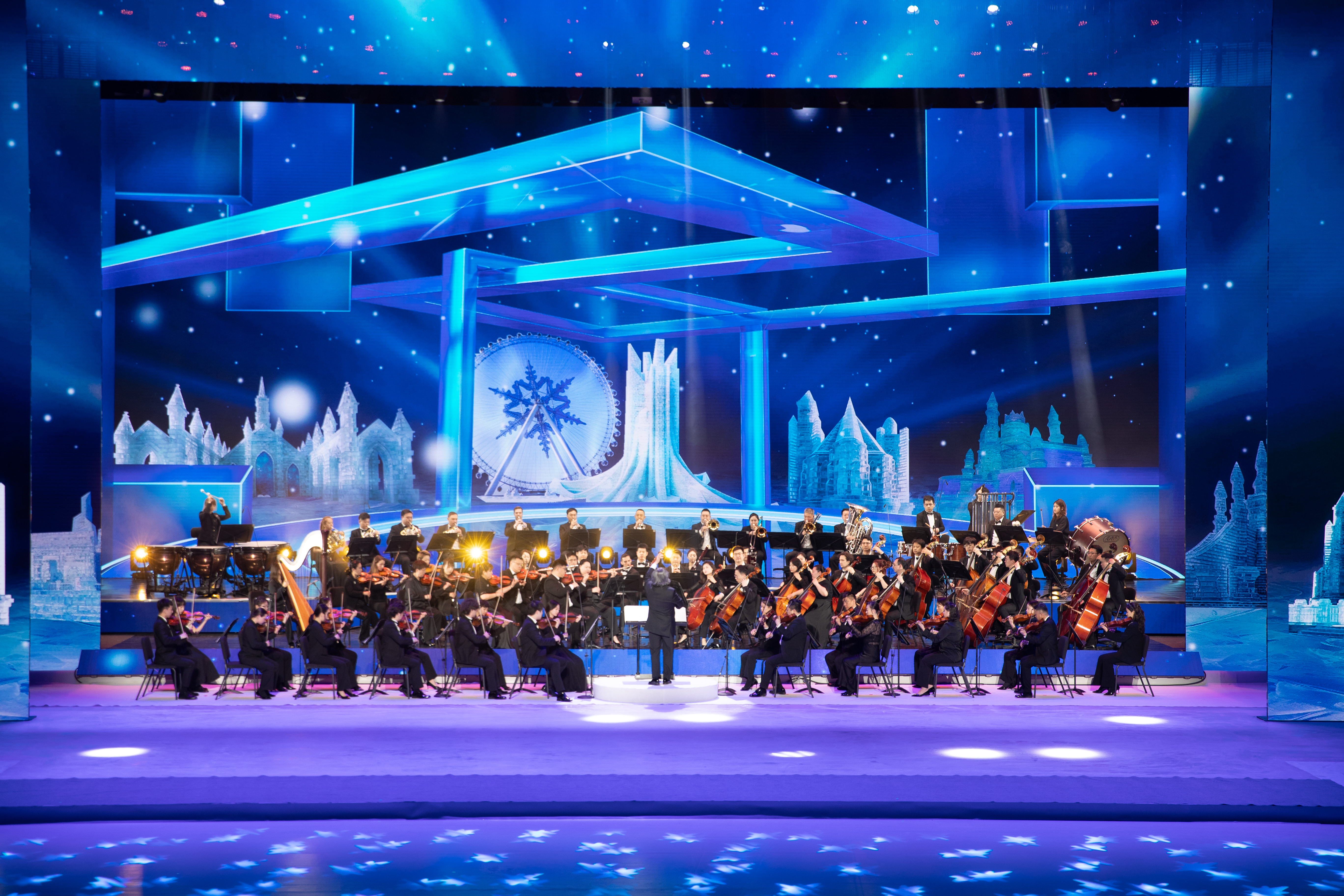 当日,交响序曲、童声合唱响彻哈尔滨大剧院,冬奥会冠军杨扬、张雨婷等奉献了精彩演出。