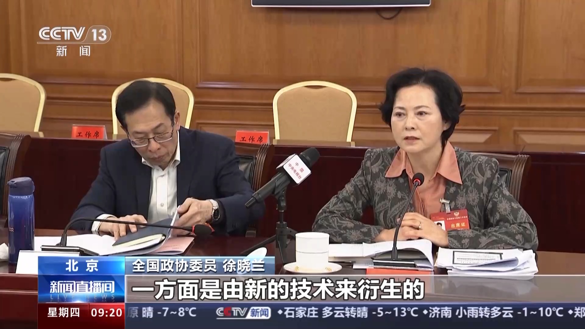 全国政协委员 徐晓兰:新质生产力,一方面是由新的技术来衍生的新的产业、新的业态,例如像人工智能,例如像元宇宙、人形机器人、量子光子等等,这有一系列的信息技术。第二个是由新的技术改造提升了我们传统产业,让我们传统产业重新焕发新的生产力。