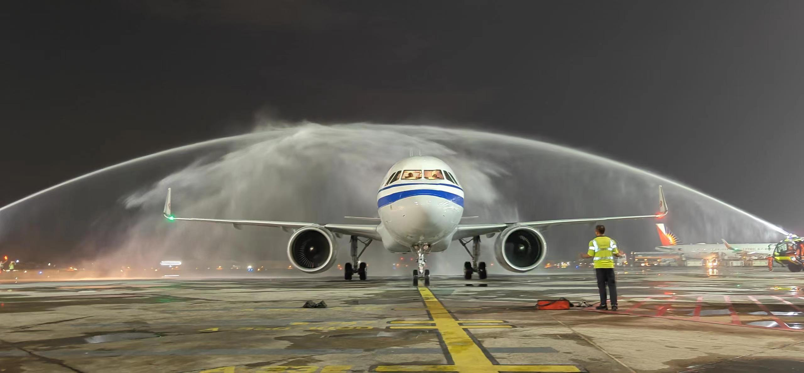 7月2日20:45,国航一架A320客机从成都天府国际机场腾空而起,朝向约2660公里以外的菲律宾马尼拉国际机场飞去。3日00:10,飞机平稳降落在马尼拉尼诺伊·阿基诺国际机场,标志着国航成都天府飞马尼拉航线正式开通。
