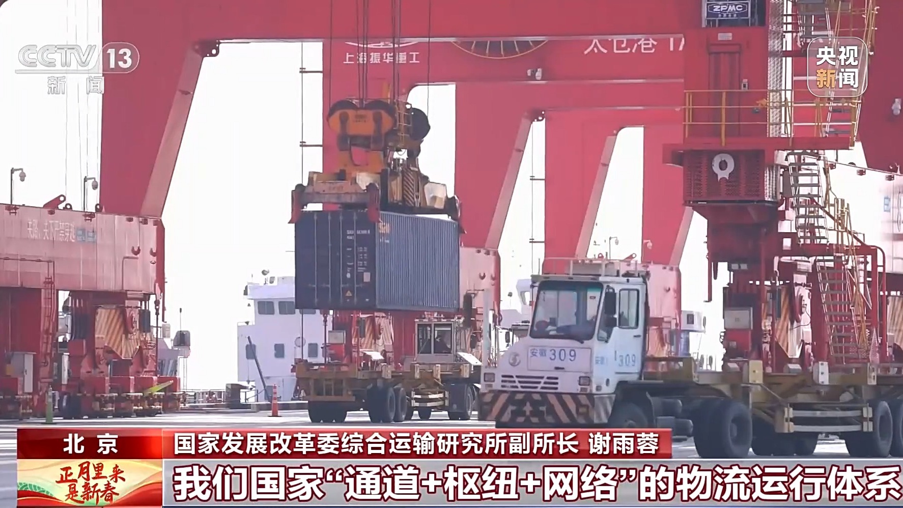 国家发展改革委综合运输研究所副所长 谢雨蓉:“物畅其流”的流动中国,见证假日消费的热度,彰显出中国经济的活力和韧性。现在,我们国家的社会物流总额差不多是GDP的2.6倍。这意味着,每创造1块钱的GDP,背后就有2.6块钱的货物在流动、在周转、在配送。我国“通道+枢纽+网络”的物流运行体系不断完善,为畅通国内大循环、发展现代化产业体系提供了重要支撑。