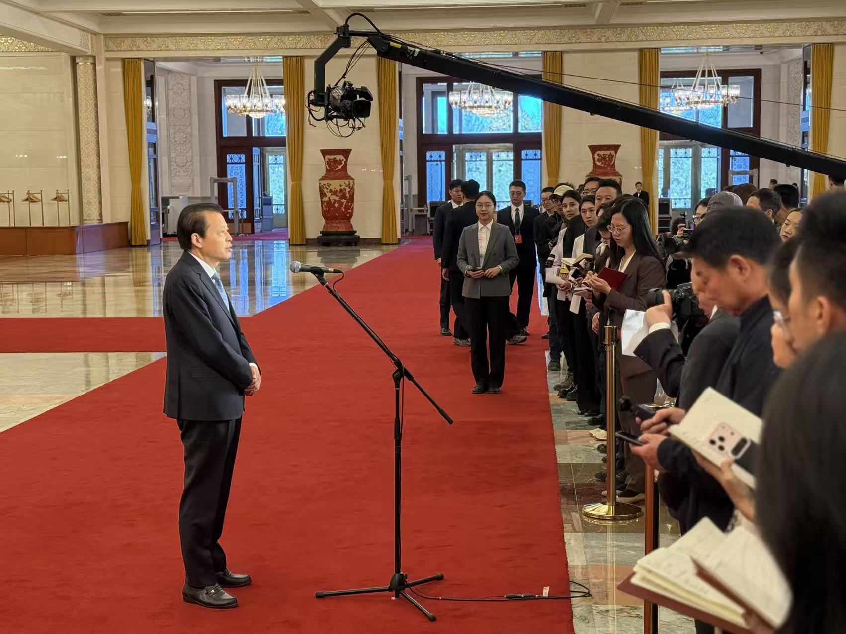 交通运输部部长刘伟在“部长通道”接受采访。封面新闻记者 代睿 摄影