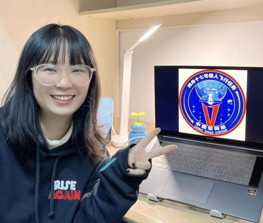上午11时13分59秒,神舟十七号飞船点火发射。在现场,有一位特殊的观众,她就是神舟十七号飞行任务标识的设计者——谭昊瑜,四川美术学院文化创意设计专业研究生一年级学生。