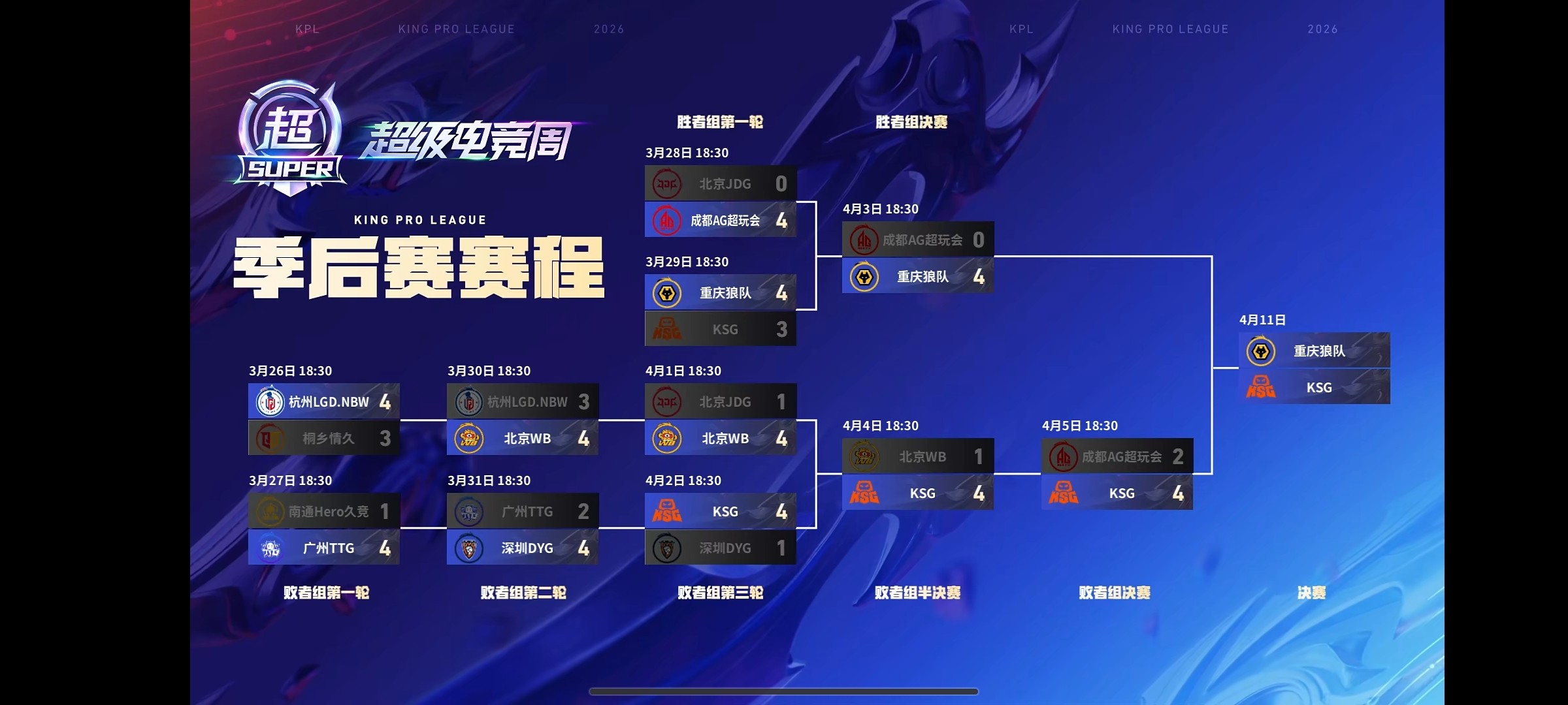 在海口五源河体育场举行的2026 KPL春季赛决赛上,KSG以4:0的大比分横扫重庆狼队,夺得队史首个联赛冠军。KSG.流浪则凭借其在中路位置的优异表现,被评选为MVP。