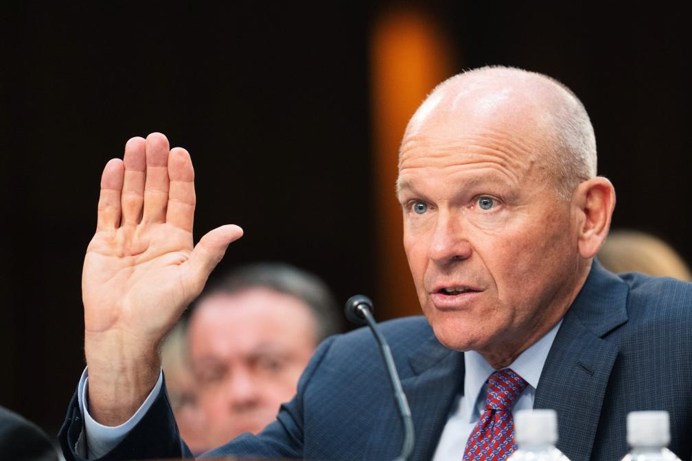 2024年6月18日,在美国华盛顿,波音CEO戴夫·卡尔霍恩在国会出席“波音破碎的安全文化”听证会。新华社记者刘杰摄