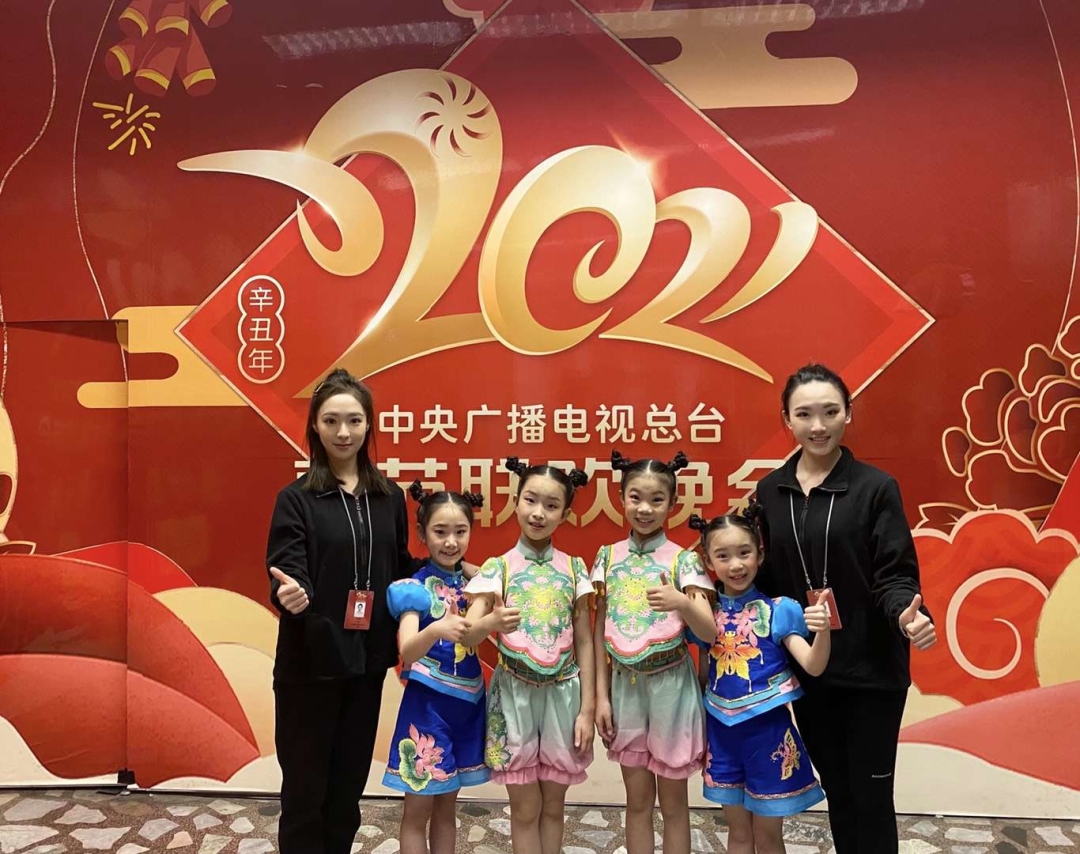 据了解,为了参加这次演出,眉山新舞飞扬舞蹈学校两位老师带领精品班3个孩子:专业班沈媛元、芭蕾班张芊、罗砚溪于2021年1月4日赴北京,进行了为期38天的春晚节目排练。