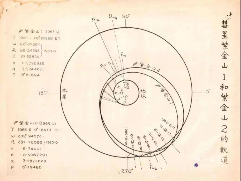 著名天文学家张钰哲手绘的紫金山1号彗星、2号彗星的轨道。(中国科学院紫金山天文台供图)