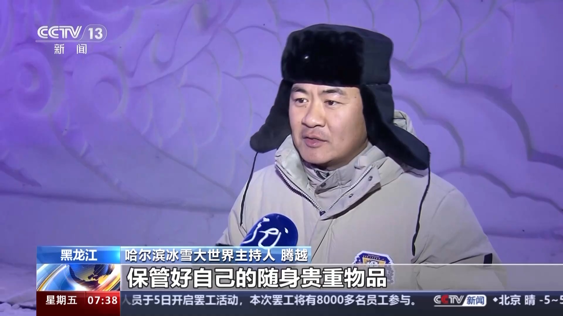 哈尔滨冰雪大世界主持人 腾越:希望大家在游玩的过程当中保管好自己的随身贵重物品,然后在玩的过程当中,其实开心重要,安全更重要。