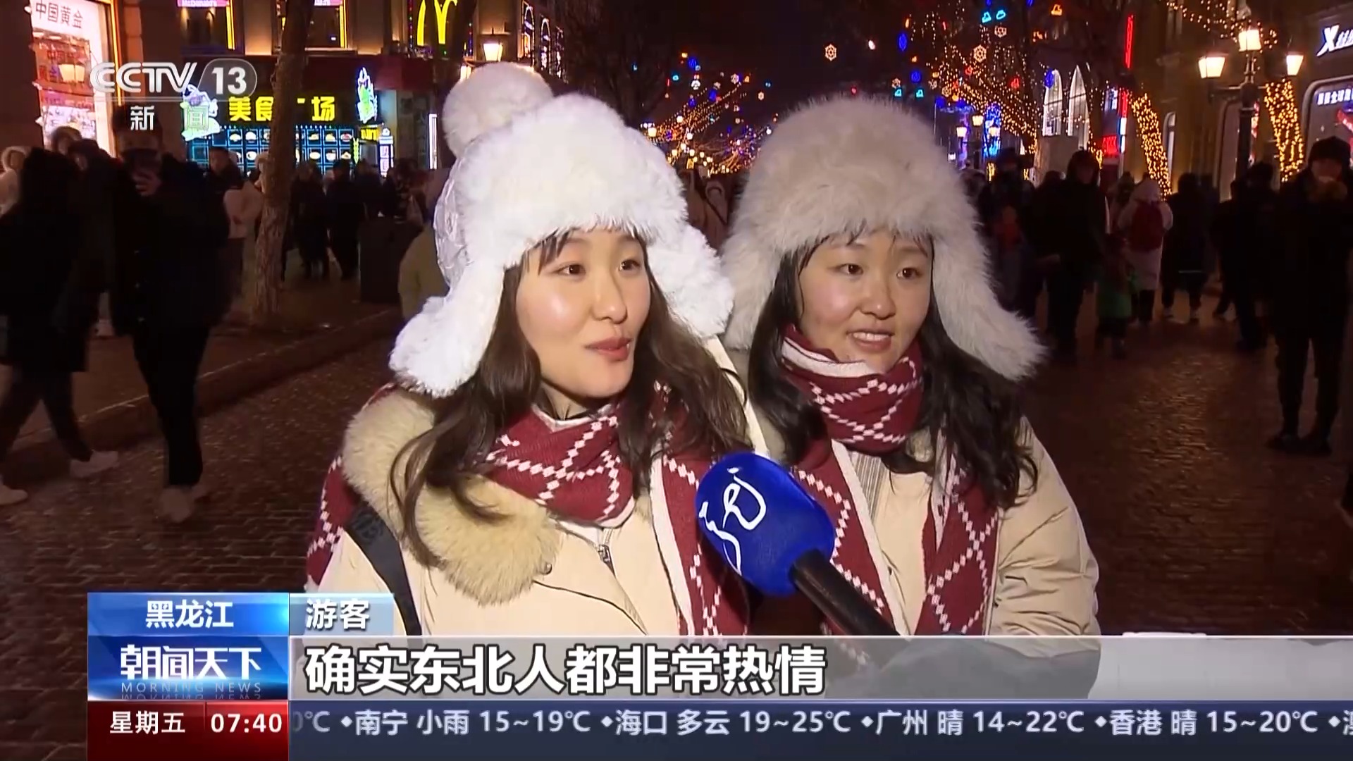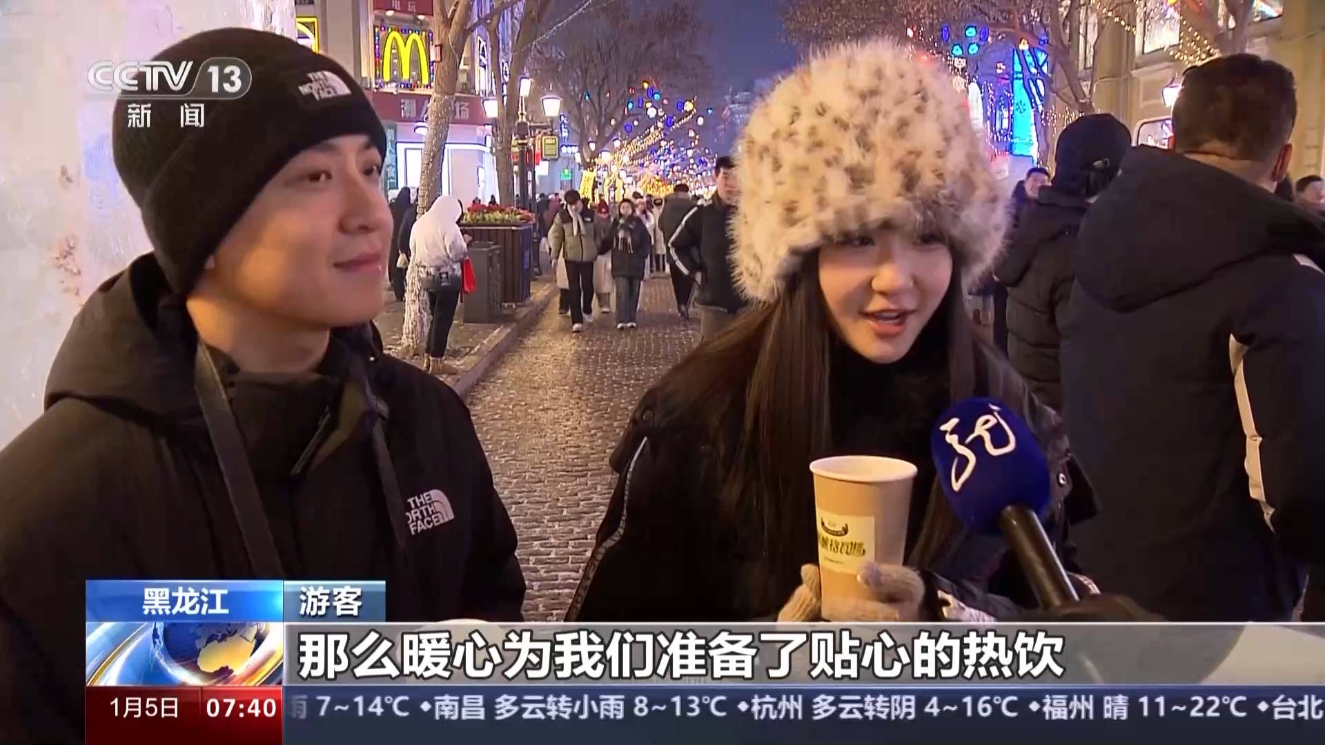这个冰雪季,黑龙江哈尔滨的冰雪旅游火爆全网,在哈尔滨冰雪大世界,主持人与游客们温馨互动的热闹场面,让热情战胜了严寒,让真情穿越了时空。