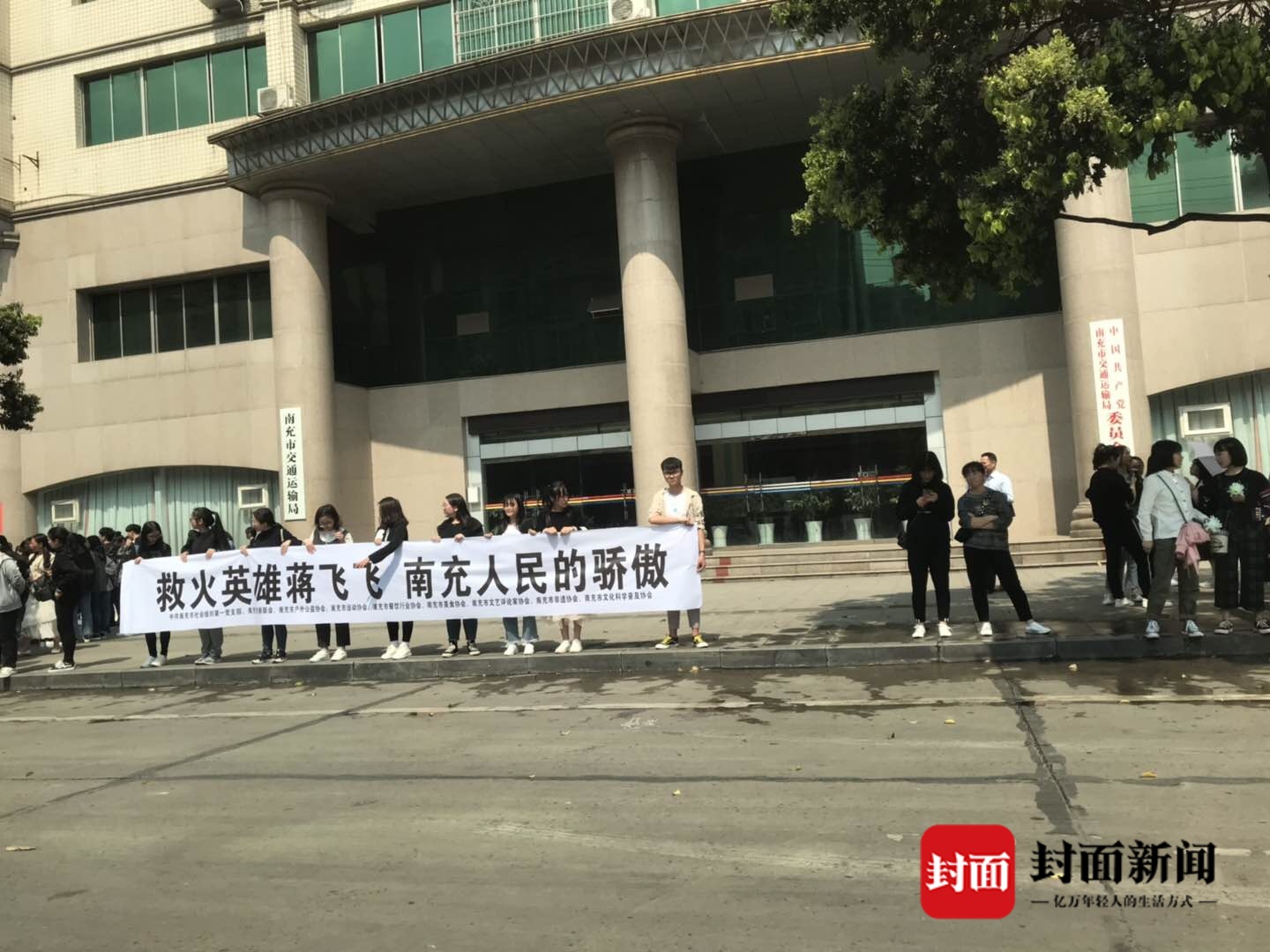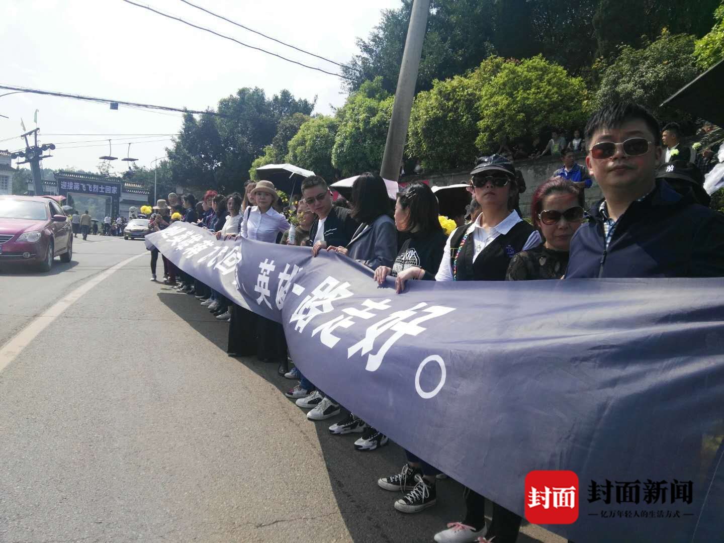 高坪区安汉广场,嘉陵江四桥,顺庆区滨江大道,玉带路,西山烈士陵园……送行的路上,早早等候的市民们,拉起横幅,告别飞飞。“蒋飞飞烈士一路走好”、“感谢英雄用生命守护祖国山河”、“英雄一路走好”……无数横幅,寄托着家乡人民对英雄的敬意。