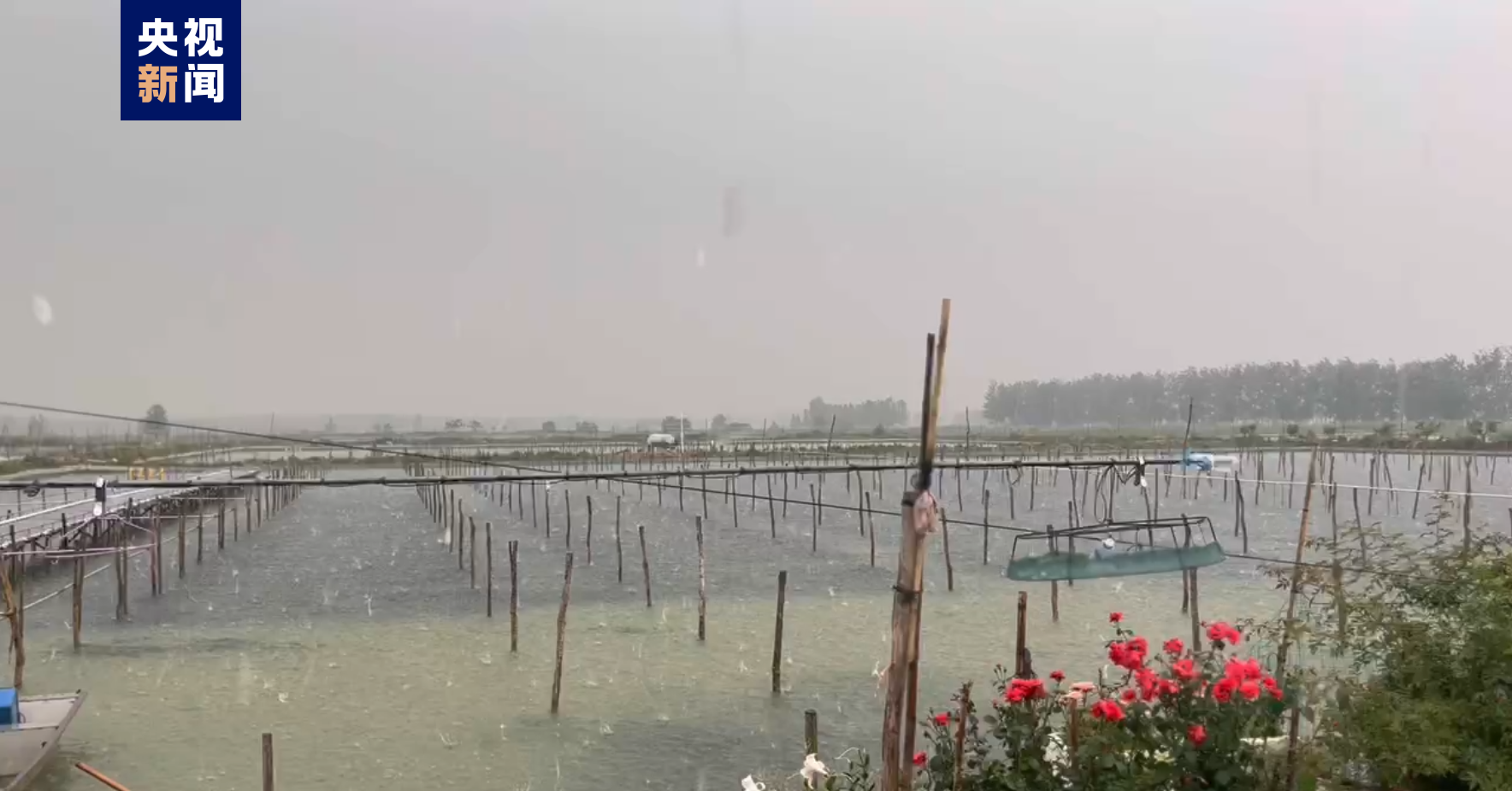 今天(6月10日)午后,江苏苏北部分地区出现冰雹天气。在宿迁泗洪半城镇,下午2时10分左右,冰雹密集落下,在养殖池塘里溅起水花,砸在地面发出清脆的声响,冰雹持续了5分钟左右。