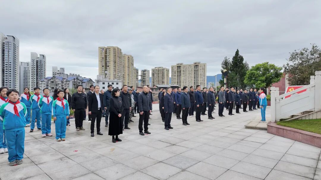 雄壮的《义勇军进行曲》奏响,全体人员高唱国歌,激昂的旋律激荡着每个人的胸膛。随后,全场默哀一分钟,向为民族独立、人民解放和国家富强英勇献身的革命先烈致以深切哀思。三鞠躬礼毕,《献花曲》缓缓响起,参加人员依次走向纪念碑,将手中的鲜花轻轻放在碑前。