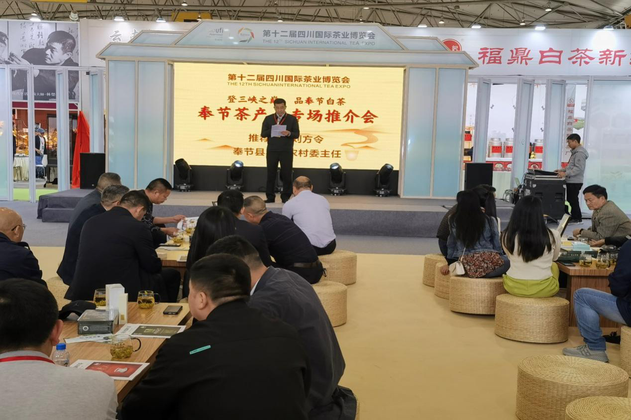 奉节县代表重庆展团举办了“登三峡之巅 品奉节白茶”专场推介会,对奉节茶叶品牌、奉节脐橙产业、茶旅融合精品线路作了宣传。