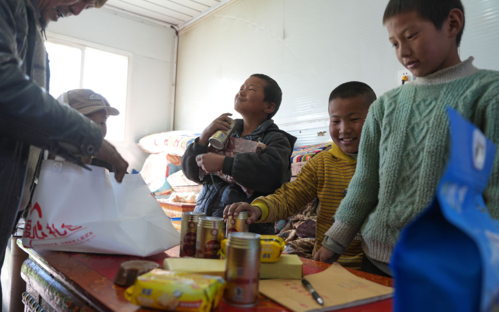 27日上午,查务乡加嘎村村民旦多领到了日喀则市委、市政府给受灾群众发放的新年爱心礼包——一袋糌粑和牛肉、茶叶、红糖、人参果、青稞酒等。