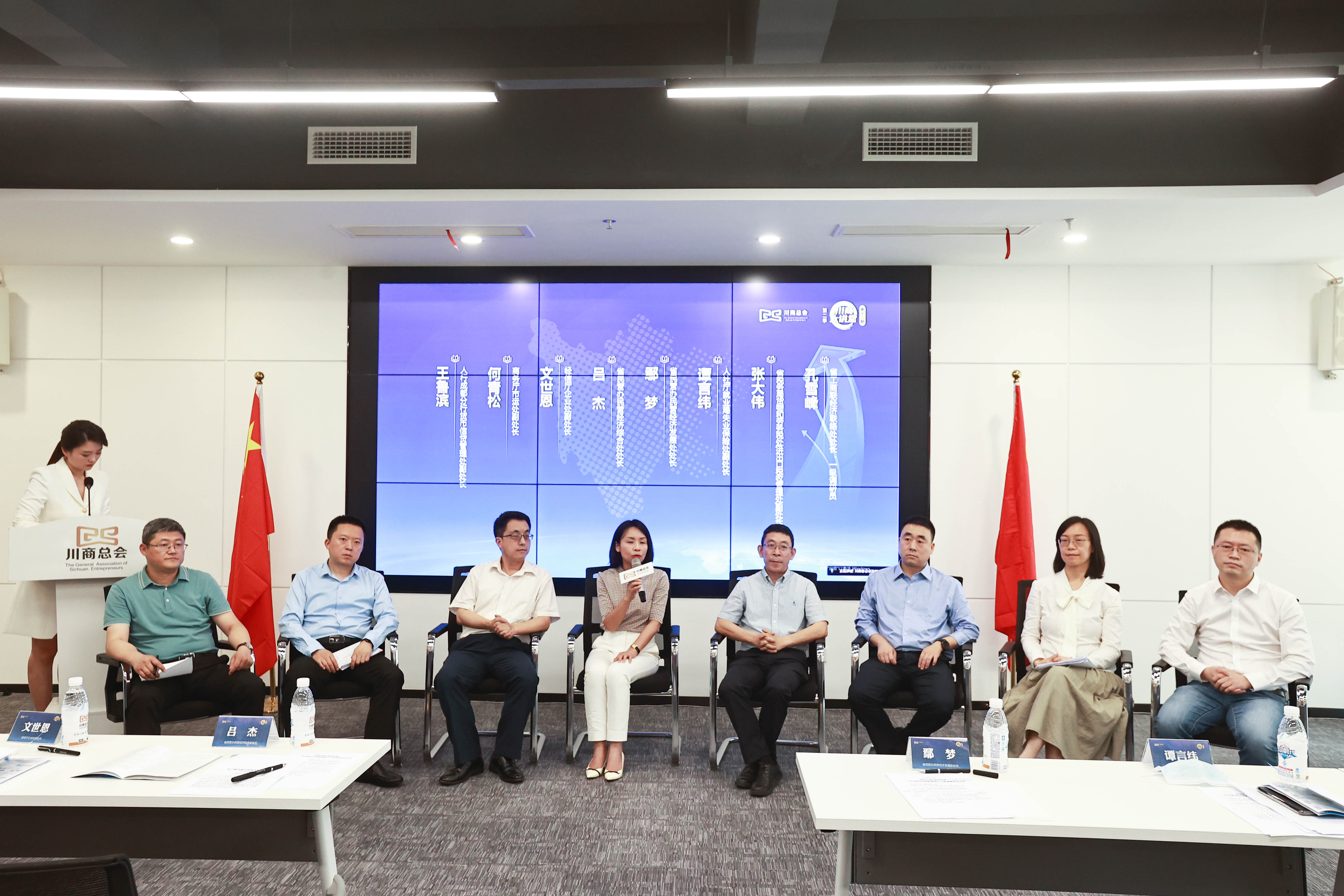 解读会现场,经济和信息化厅企业处副处长文世恩,人力资源社会保障厅就业局失业保险处副处长谭言纬,商务厅市运处副处长何青松,四川省税务局货物和劳务税处(进出口税收管理处)副处长张大伟,人行成都分行货币信贷管理处副处长王鲁滨,省工商联经济联络处处长、一级调研员孔雪峰等七部门领导分别介绍了所在部门主要纾困政策举措,企业精准获取政策支持的注意要点和建议等。