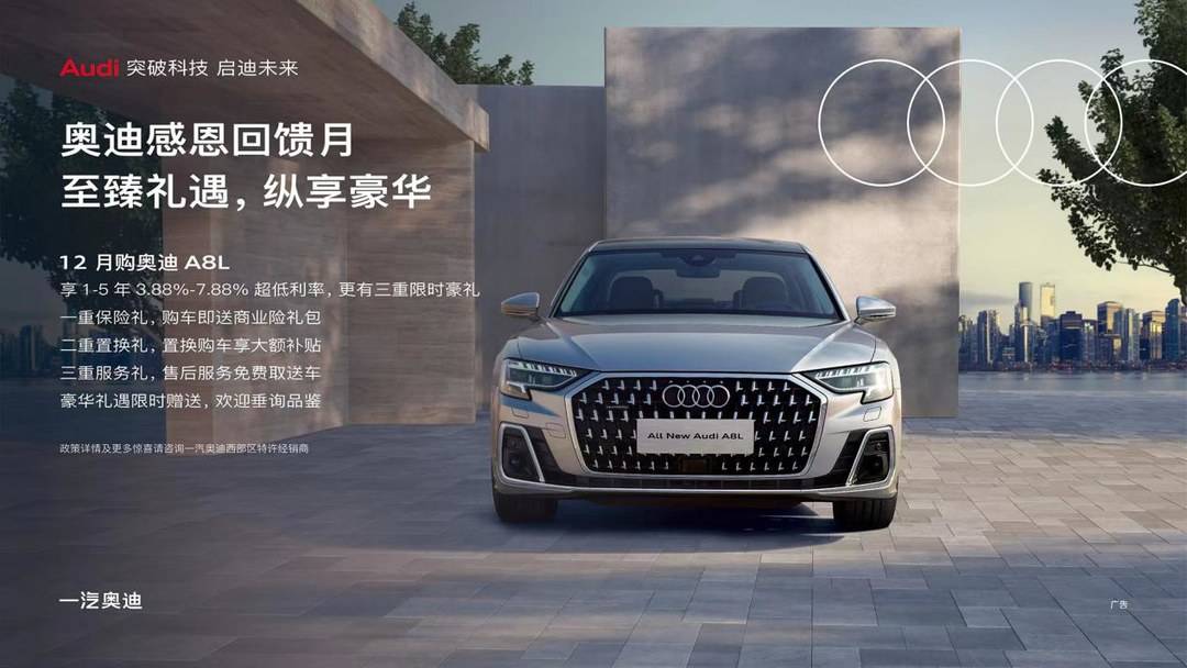 12月,购全新奥迪A8L,享多重限时好礼。
