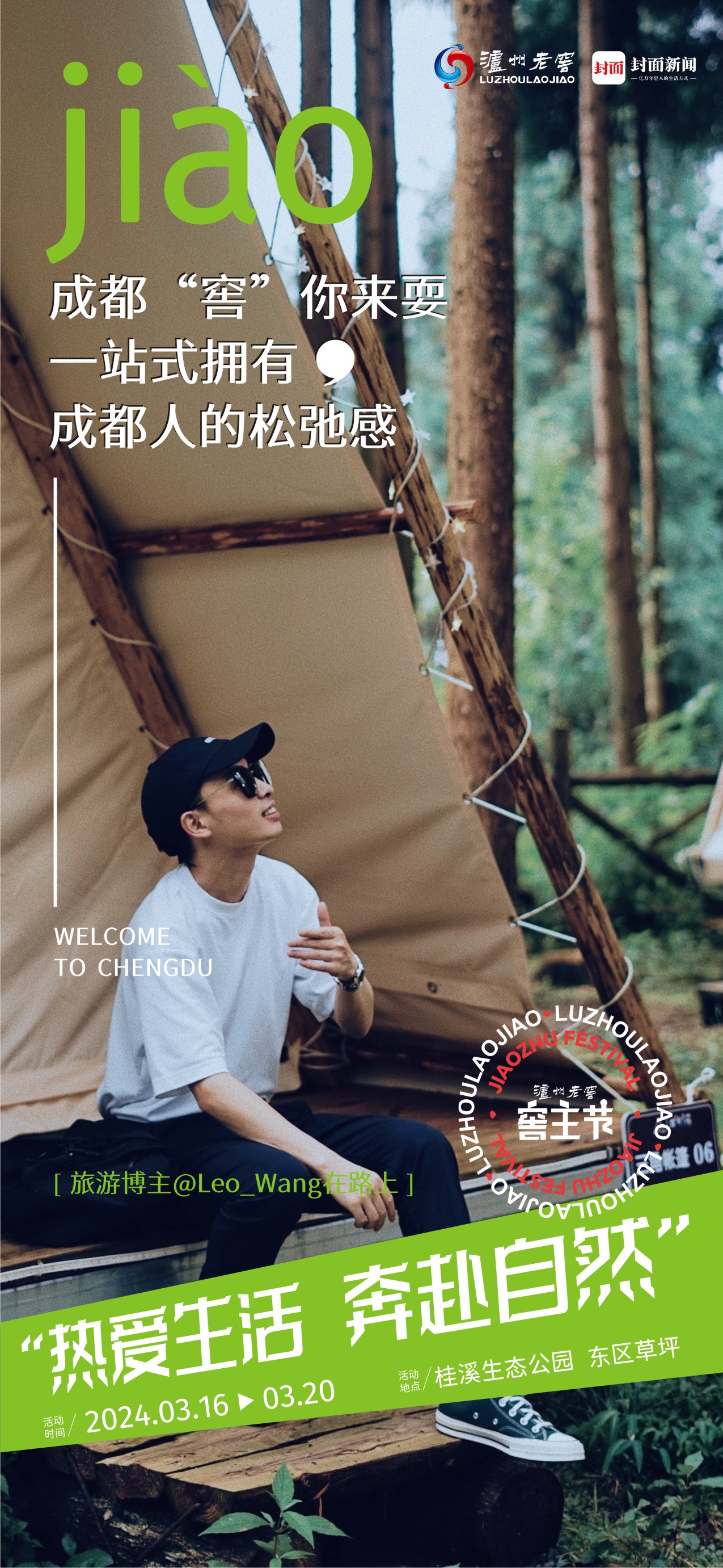 3月16日-3月20日,在世纪城新会展中心旁,成都桂溪公园东区大草坪,泸州老窖窖主节“浓烈”来袭,氛围感拉爆。