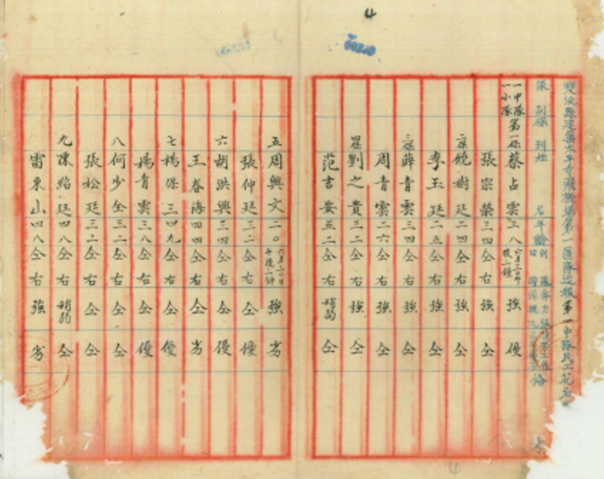 ▲ 图为《双流县建筑太平寺飞机场第一区队造报第一中队民工花名录》(双流区档案馆 供图)