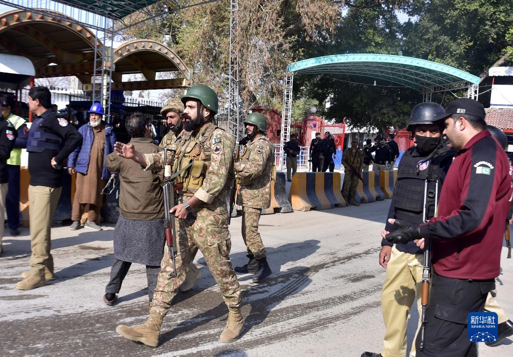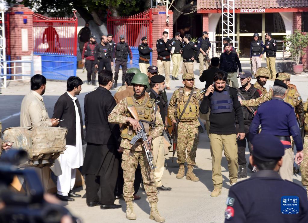1月30日,在巴基斯坦西北部开伯尔-普什图省首府白沙瓦市,安全人员在爆炸袭击事件现场警戒。