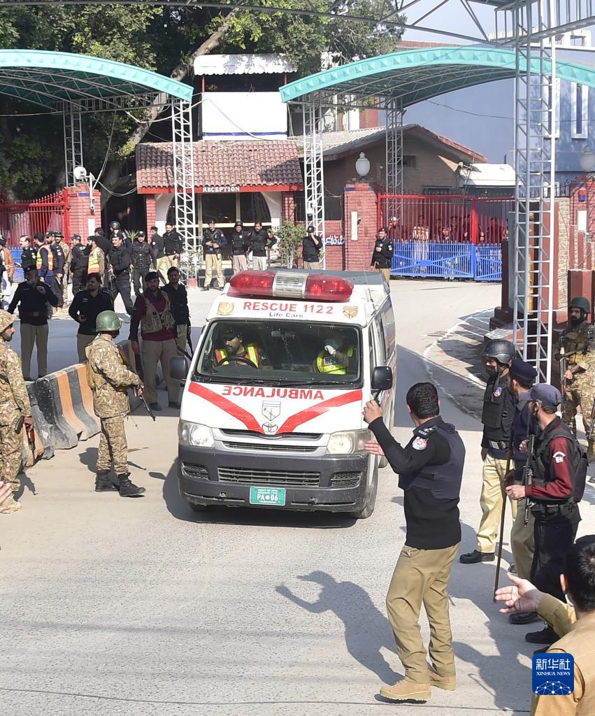 1月30日,在巴基斯坦西北部开伯尔-普什图省首府白沙瓦市,运送伤者的救护车驶离爆炸袭击事件现场。