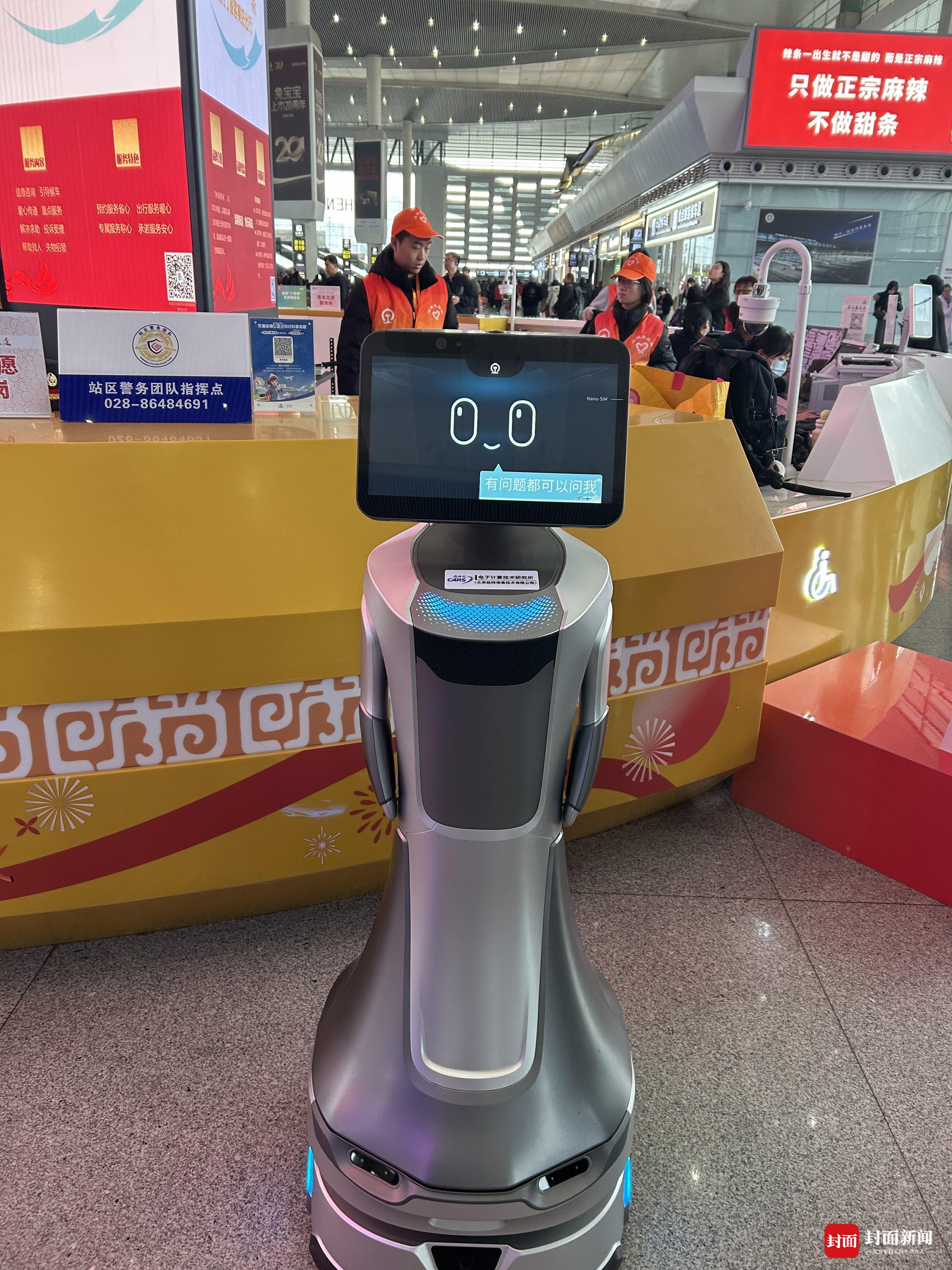 成都东站首次引入机器人,方便旅客查询车票、车次、检票等信息。 曹菲 摄