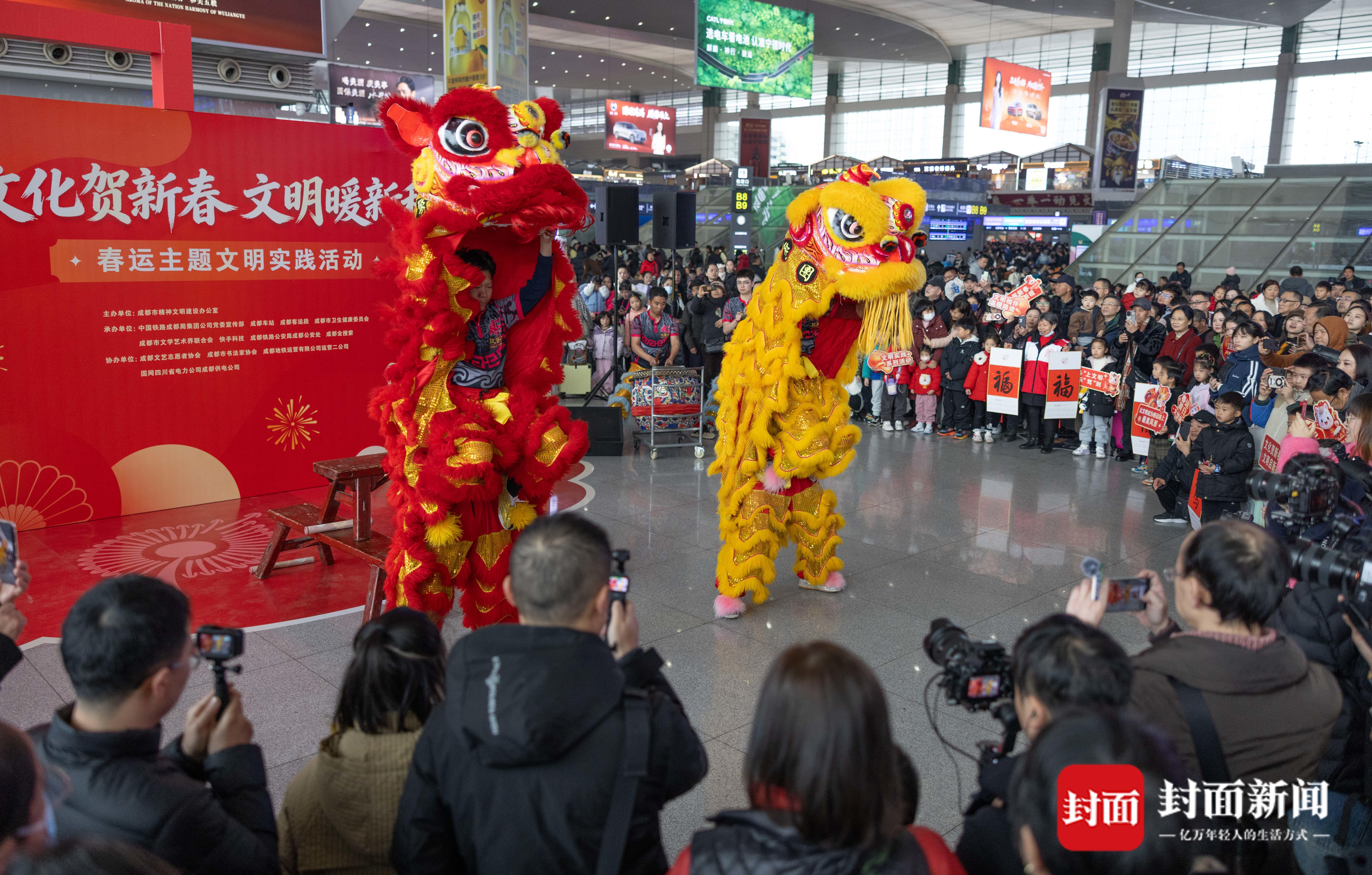 车站进一步强化“银发”和脱网人群服务,每日招募68名青年志愿者,为重点旅客提供“一对一”全程帮扶;各站候车室设置新春打卡点,张贴窗花、悬挂中国结,营造浓厚节日氛围;在成都东站开展“我的铁路风景”“送万福进万家”等文明出行及春节民俗活动,丰富旅客候乘体验。