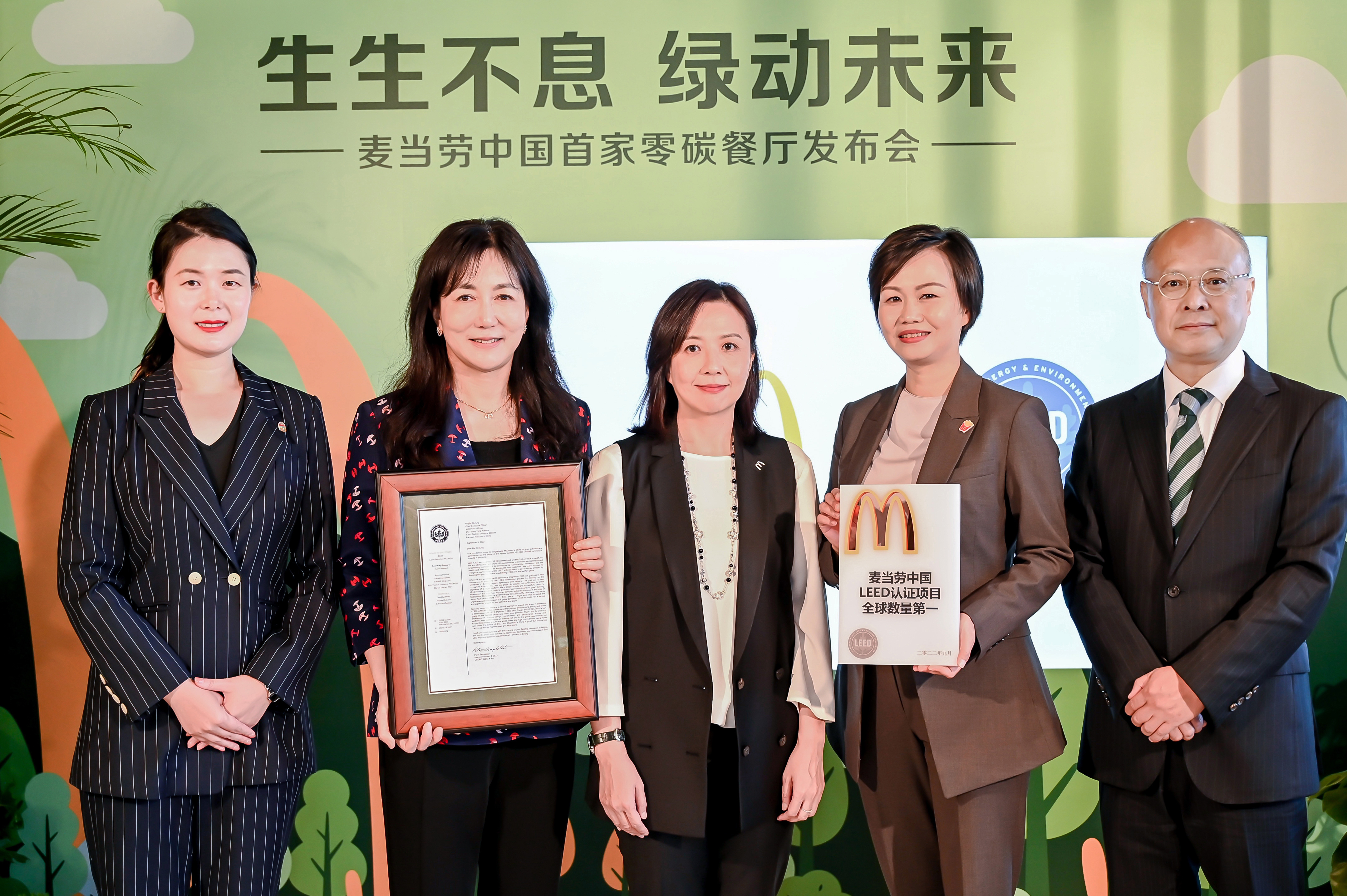 美国绿色建筑委员会为麦当劳中国授予LEED认证项目数量全球第一荣誉