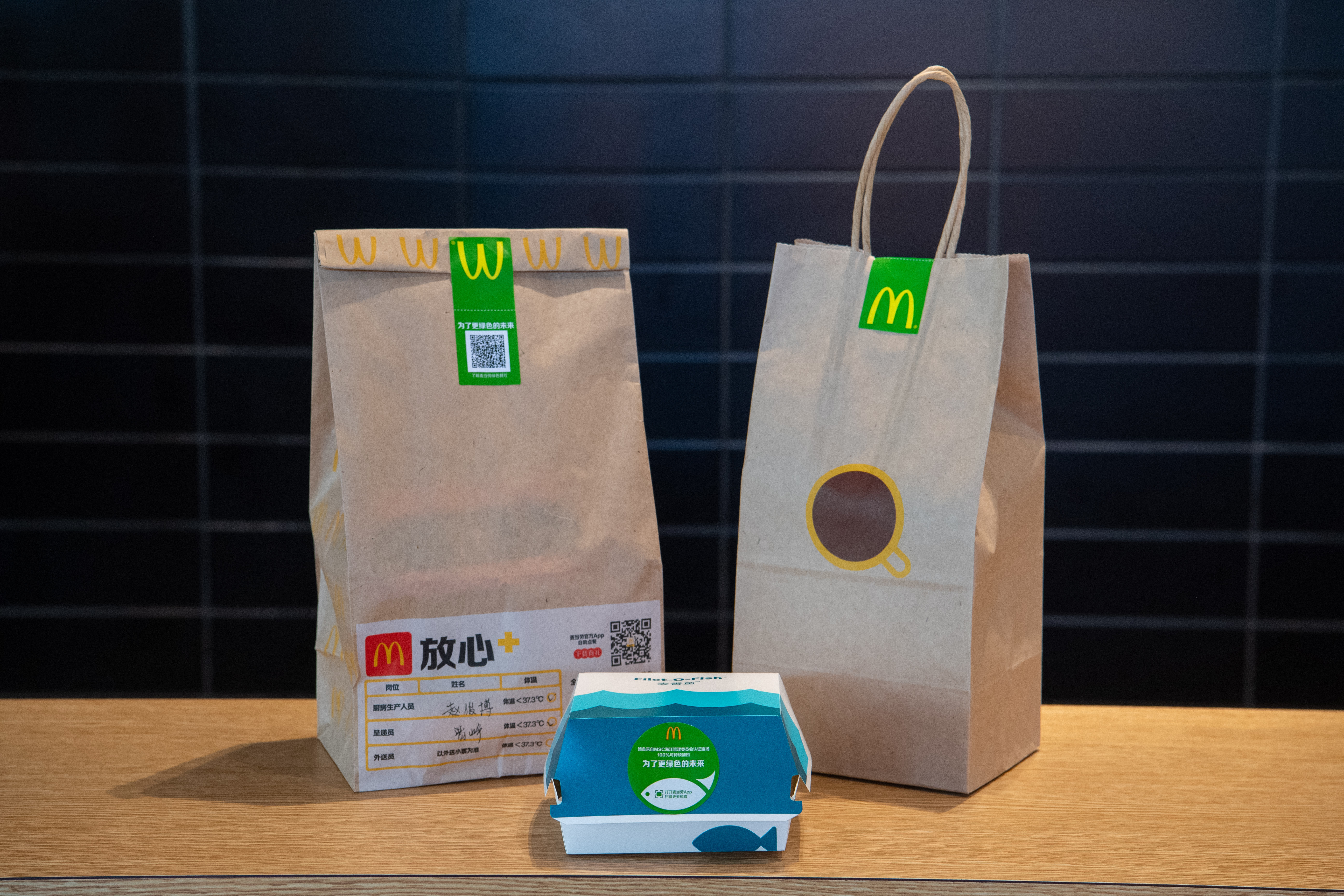 为庆祝“零碳餐厅”开业,麦当劳中国全国近5000家餐厅的纸袋封口贴一齐由红变绿,消费者还可以用AR(增强现实)扫描麦香鱼汉堡盒,了解绿色小故事