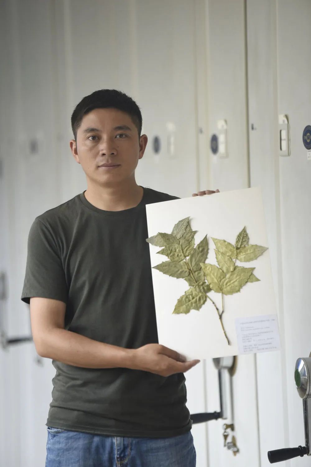 胡君展示采集的尖齿卫矛标本(8月17日摄)。