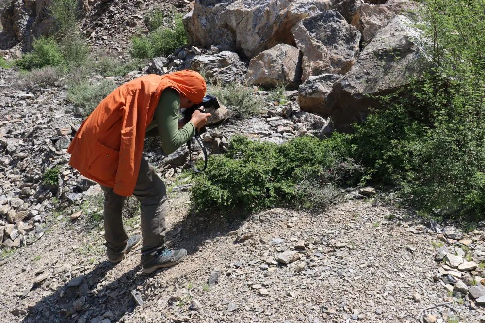 2021年,胡君在四川省得荣县进行野外考察(资料照片)。新华社发