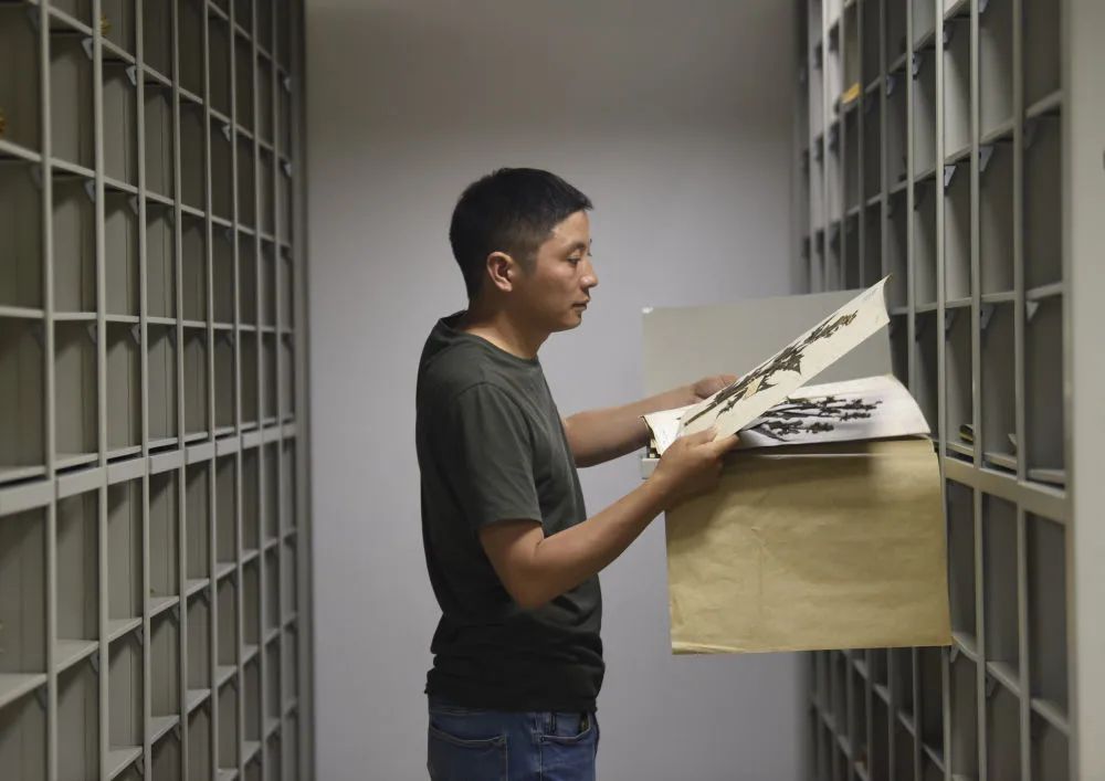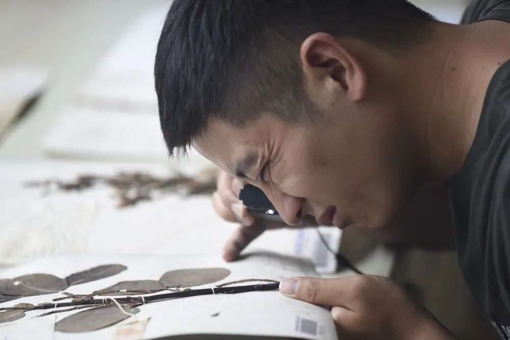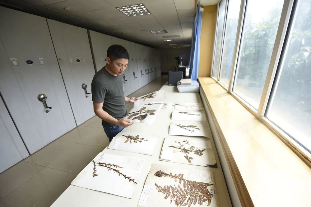 胡君在中科院成都生物研究所标本馆内查阅标本(2022年8月17日摄)。