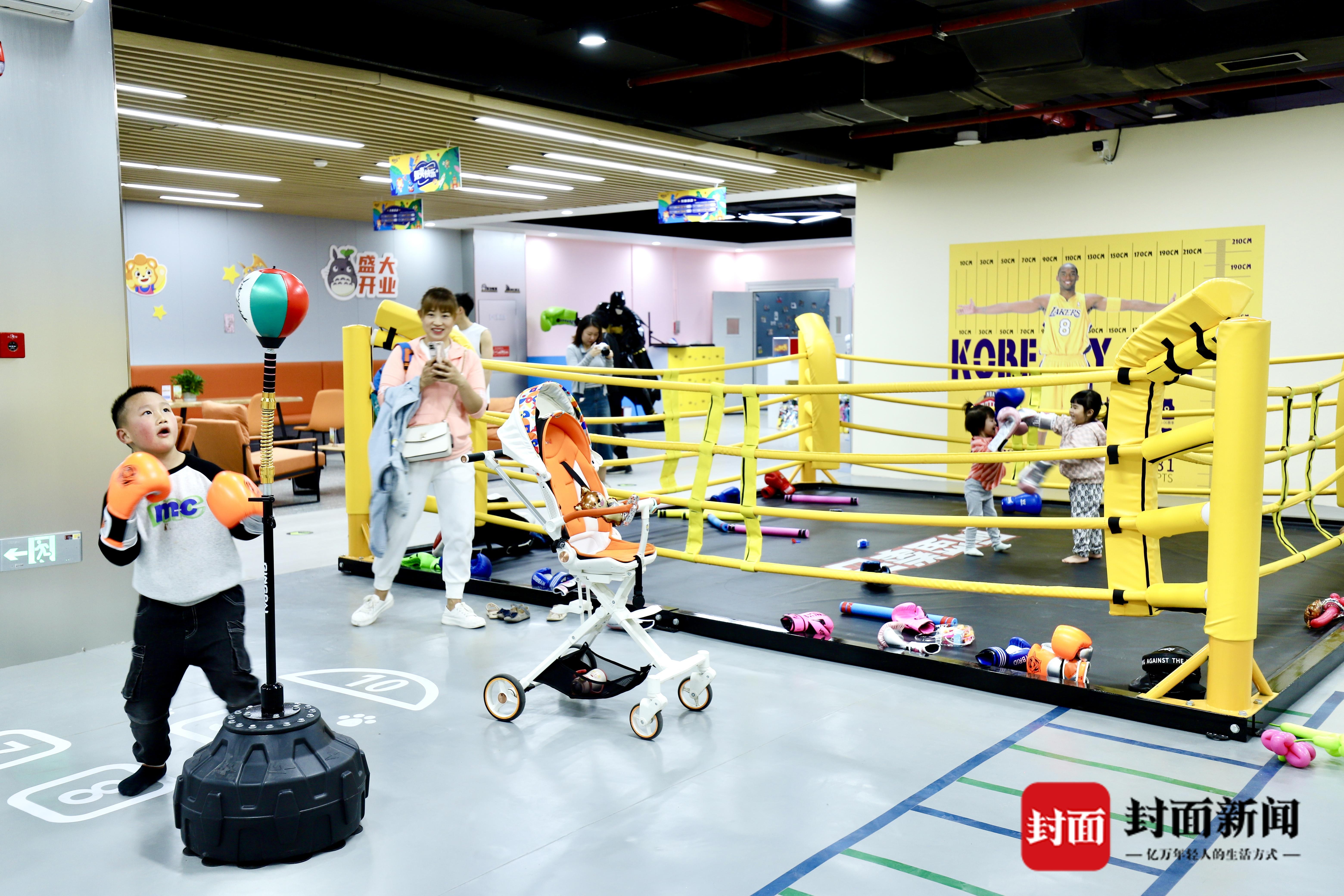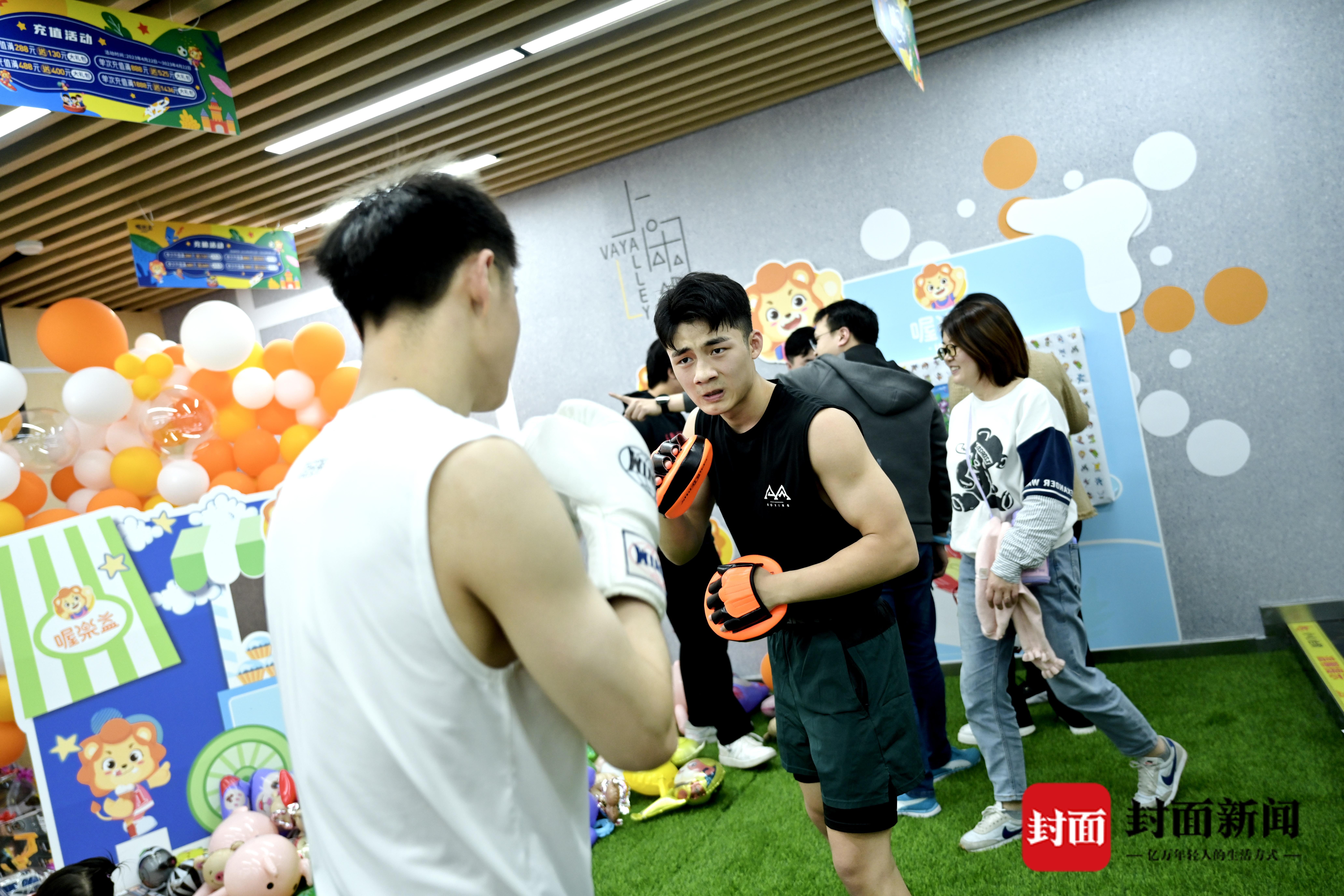 走进川师大·上闲里,目之所及皆是运动元素。地面上两条蓝色“跑道”尤为醒目,健身装置、拳击擂台、篮球场地等运动场景纷纷映入眼帘。