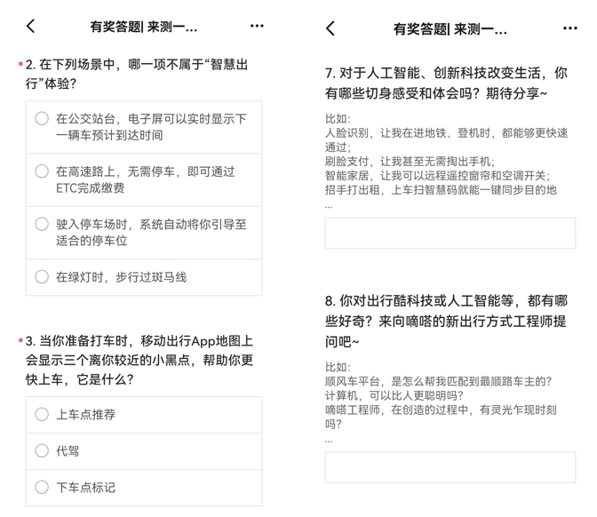 此次,嘀嗒出行还发起了主题为“测一测你的出行酷科技达人指数”的首届“有奖答题挑战赛”。该比赛旨在通过重要科技概念科普、智能科技应用场景和原理、用户对智能科技的切身体会和好奇等多个维度,助力广大用户加深对智慧出行的具体感知,唤起更多科学探索乐趣和兴趣。