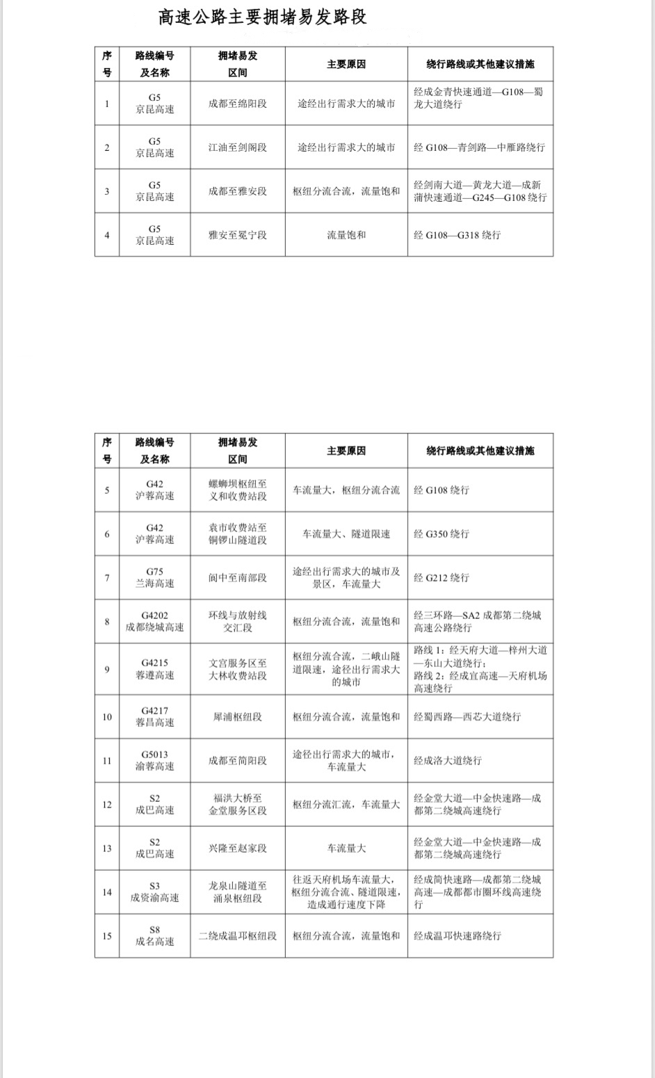 今年中秋、国庆双节将至,大家探亲、旅游、购物出行需求旺盛,四川将迎来大客流、大车流高峰,假期实行高速公路小客车免费通行政策。9月26日,四川省公安厅交管总队结合近年国庆期间道路出行特点,对今年四川节日期间交通形势作出预判及提示。