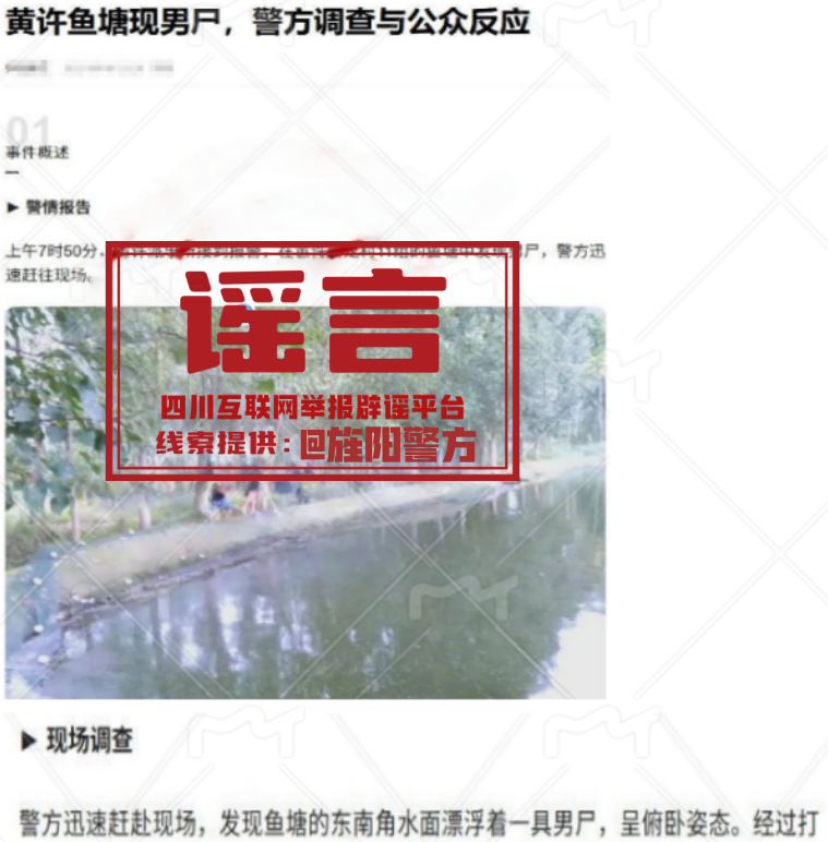 经核实,在黄许新龙村11组的鱼塘并没有发现此类事件,此信息属于不实信息。(来源:四川互联网举报辟谣平台、@旌阳警方)