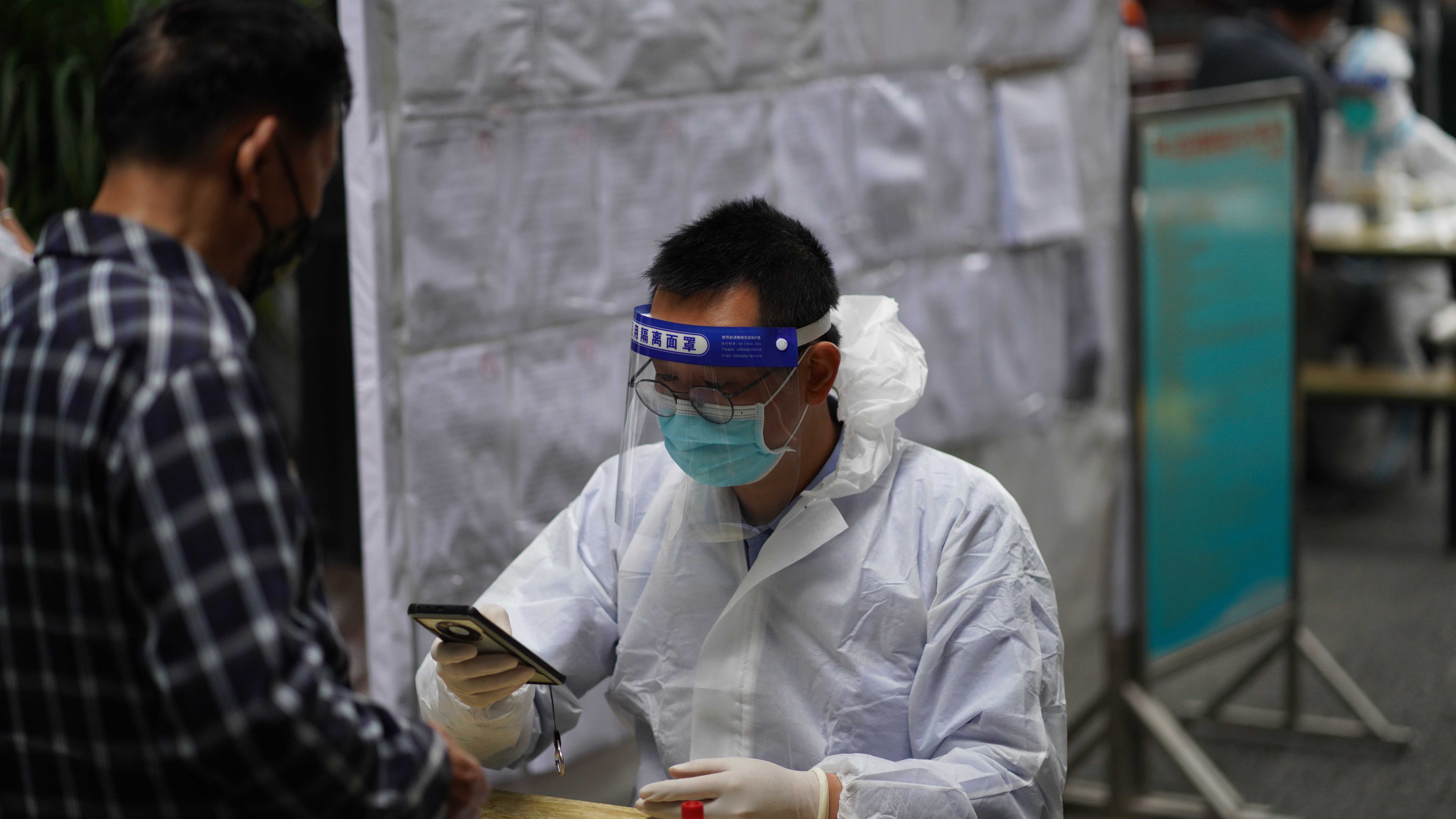 10月1日一大早,陶鹏穿好防护服,开展核酸信息采集。黄璐则配合物管人员,对外出采购生活物资的居民进行核对登记,发放出门卡。陶鹏说,他们是警察,平日里朝夕相处的邻居们都很信任他们。