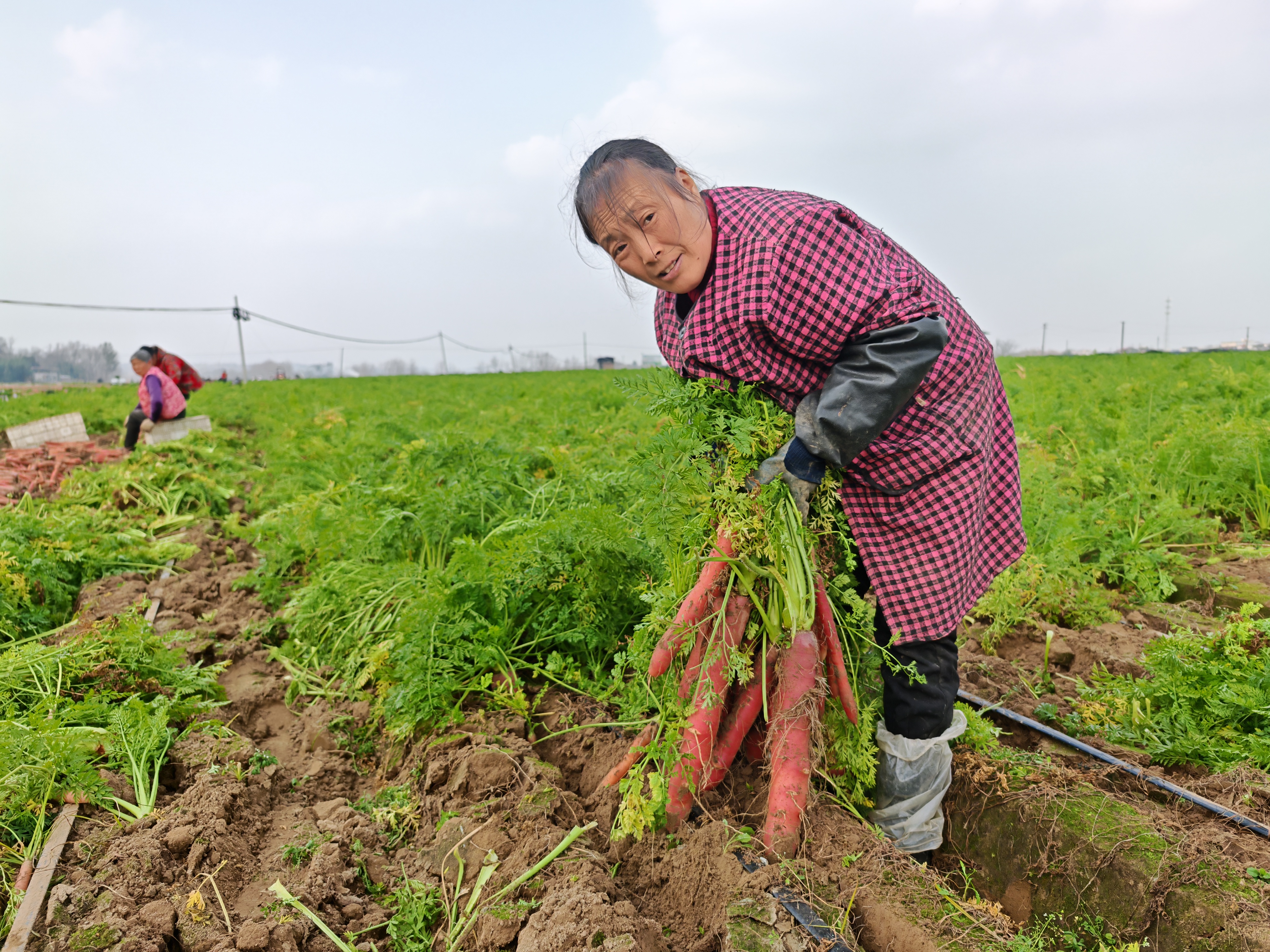 “今年收成比往年都好!200多亩圆根萝卜亩产超1万斤,400多亩胡萝卜亩产也有8000斤,算下来又是一个丰收年。”成都市梁家家庭农场负责人梁强表示,他和兄弟梁逸此前在重庆做蔬菜批发生意,2020年左右开始在养马街道流转土地种植萝卜,从最初200亩逐渐扩种到如今的640余亩。随着规模的扩大,他们也在不断探索效率更高的机械化种植。