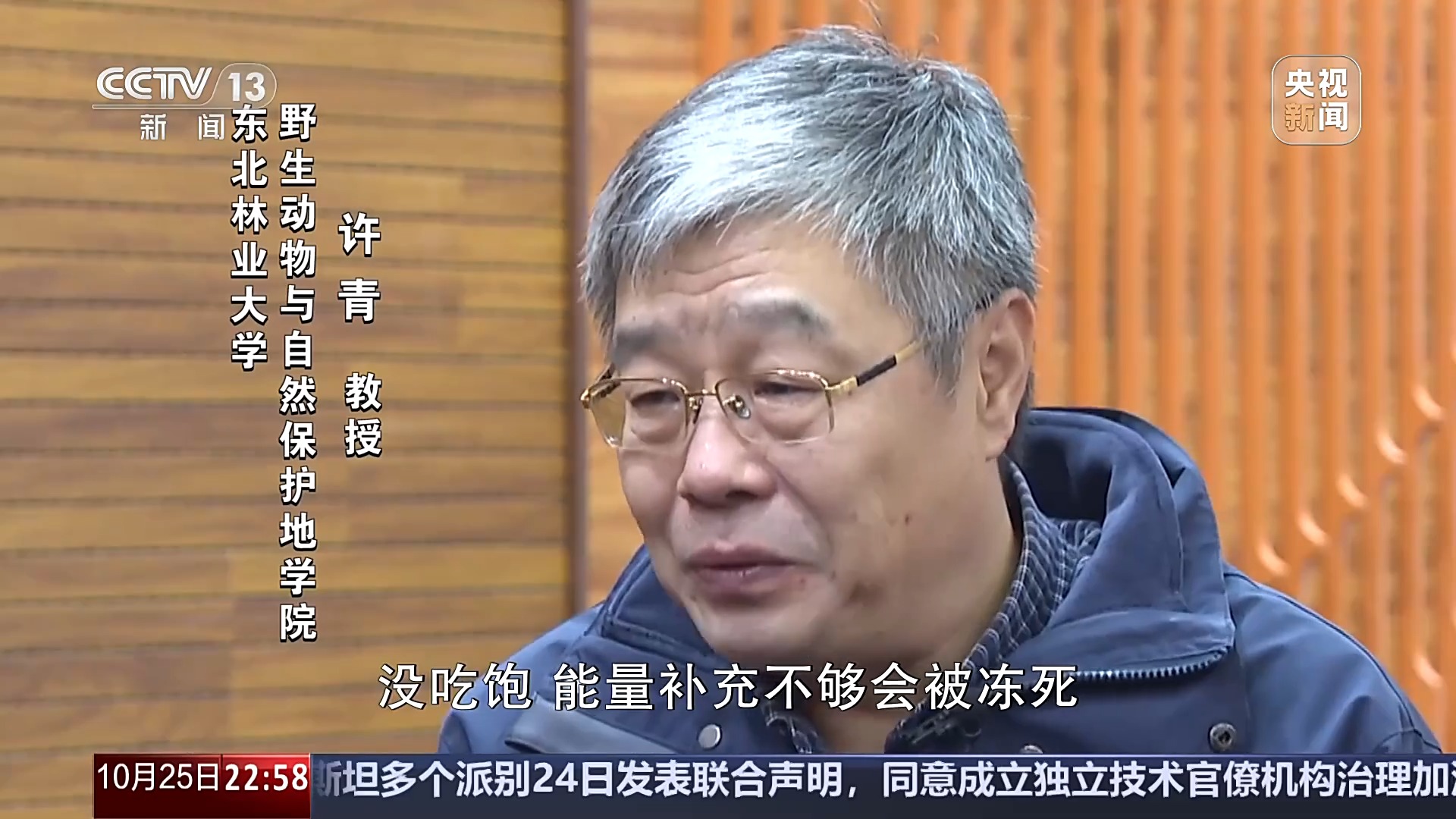 东北林业大学野生动物与自然保护地学院 许青:由于收集不到食物,这样就会出现由于缺乏能量补充而死亡的现象,今年繁殖的第二窝雏鸟,体能储备并不充分。如果这些鸟能吃饱,一般不会被冻死,没吃饱,能量补充不够,才会被冻死。