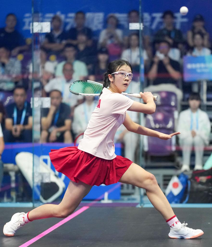 ↑8月12日,中国选手殷子媛在比赛中回球。新华社记者 李旭伦 摄