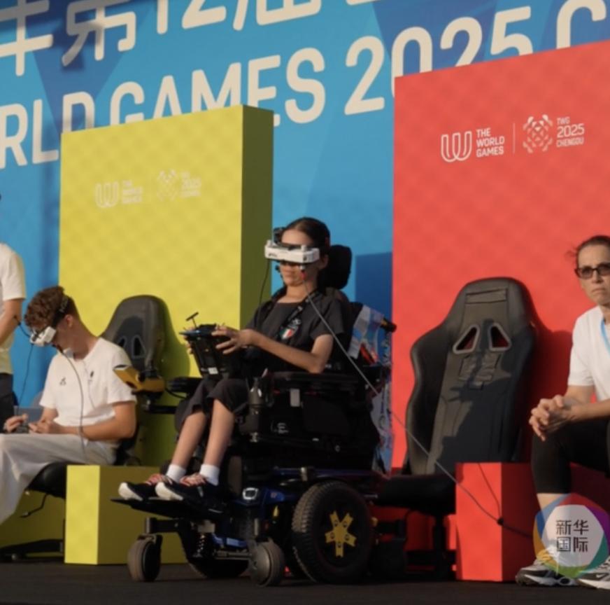 ↑意大利运动员路易莎·里佐参加无人机竞速比赛。(视频截图)
