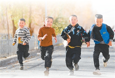 小朋友奔跑在达里雅布依新村。 新华社记者胡虎虎摄