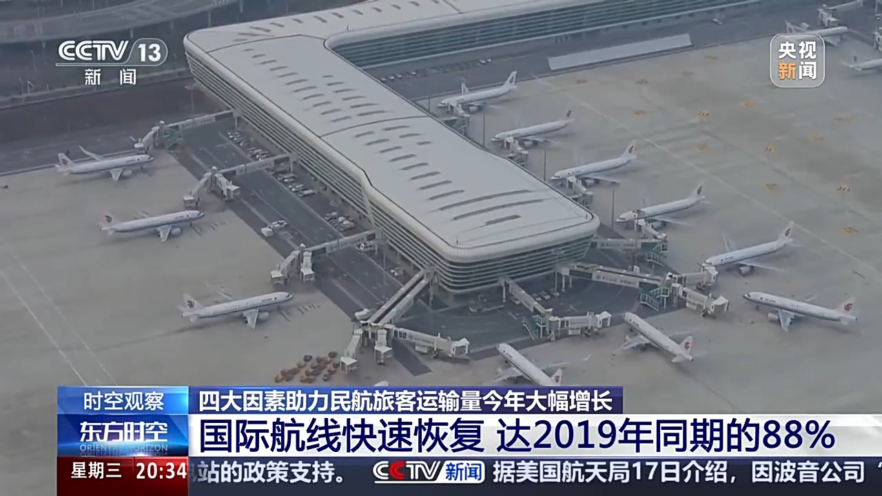除了国内国外航空市场的需求支撑之外,第三个因素是:旺季更旺。来自民航局的数据显示:今年春运、暑运期间,民航日均旅客运输量分别完成210万人次和229万人次,行业单日最高旅客运输量达到245万人次,较2023年单日最高提高9.8%;而最后一个因素是:行业客座率保持较高水平。行业平均客座率水平超过83%,同比提升超过5个百分点,与2019年同期基本持平,行业客座率单日最高接近88%。17日,国家移民管理局发布公告,即日起全面放宽优化过境免签政策,这直接带动境外游客机票预订量大幅上涨。记者注意到,在多家旅游平台上,今年使用非中国护照预订国内航线间机票,同比增长近2倍。