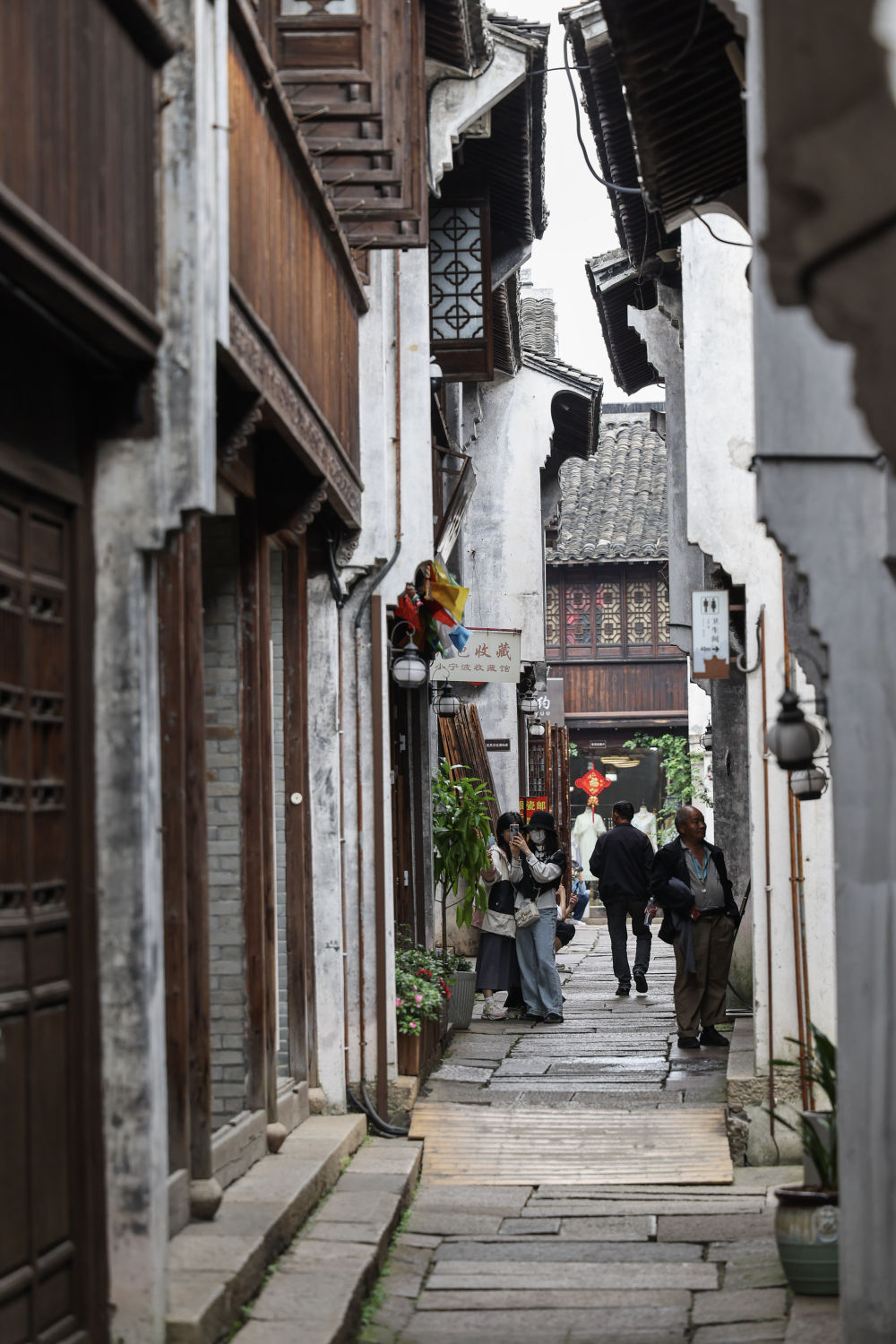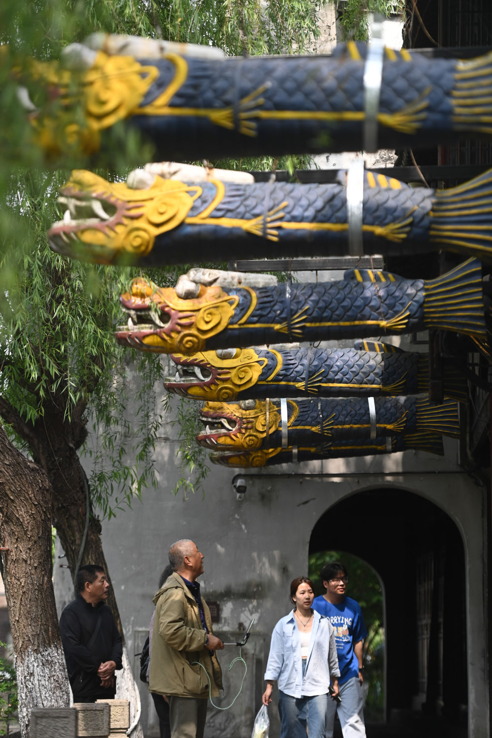 4月26日,游客在嘉兴市月河历史街区观光游玩。新华社记者 江汉 摄
