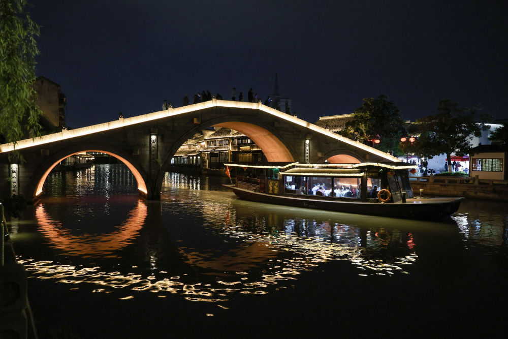 4月25日拍摄的月河历史街区夜景。新华社记者 徐昱 摄