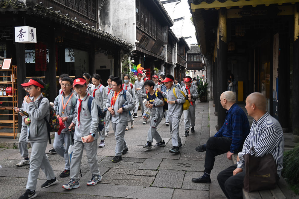 4月26日,小学生在月河历史街区参加研学活动。新华社记者 黄宗治 摄