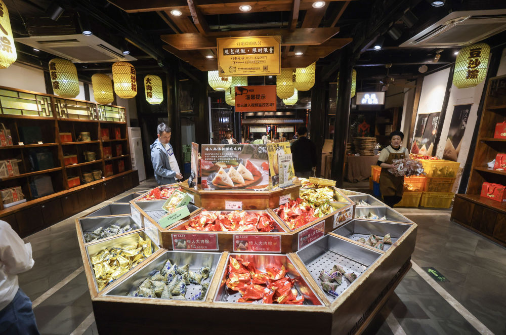 4月25日,游客在月河历史街区选购嘉兴粽子。新华社记者 徐昱 摄