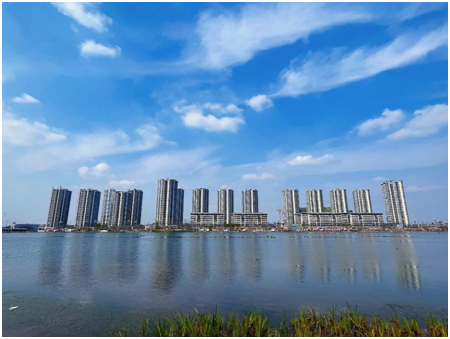 万达•内江文旅城A-01地块位于汉安湖北侧,与汉安湖仅一街之隔,是整个万达•内江文旅城项目内前排的观湖组团,拥有极佳的观湖视野,业主站在阳台,向南而望即可俯瞰整个汉安湖景观。