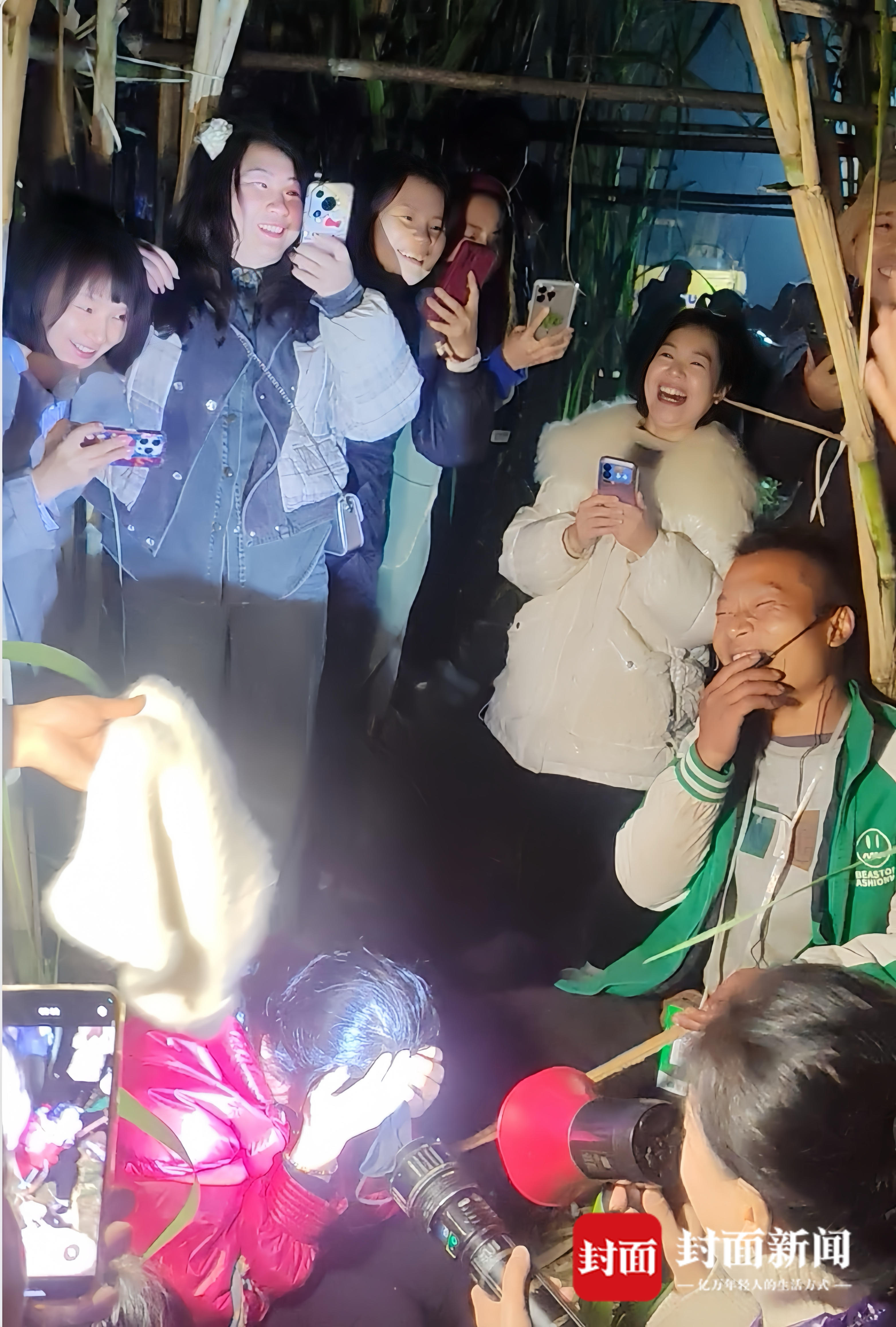 “十几年没见过这么多人。”一位戴着粉红帽子的阿姨掰着手指头数着,“眉山、雅安、成都,还有外地的,到处都有人来。”阿姨们喜欢人多,除了热闹,村里还有人推着小车卖吃的,他们家的甘蔗也捎带着多卖出了几十斤。