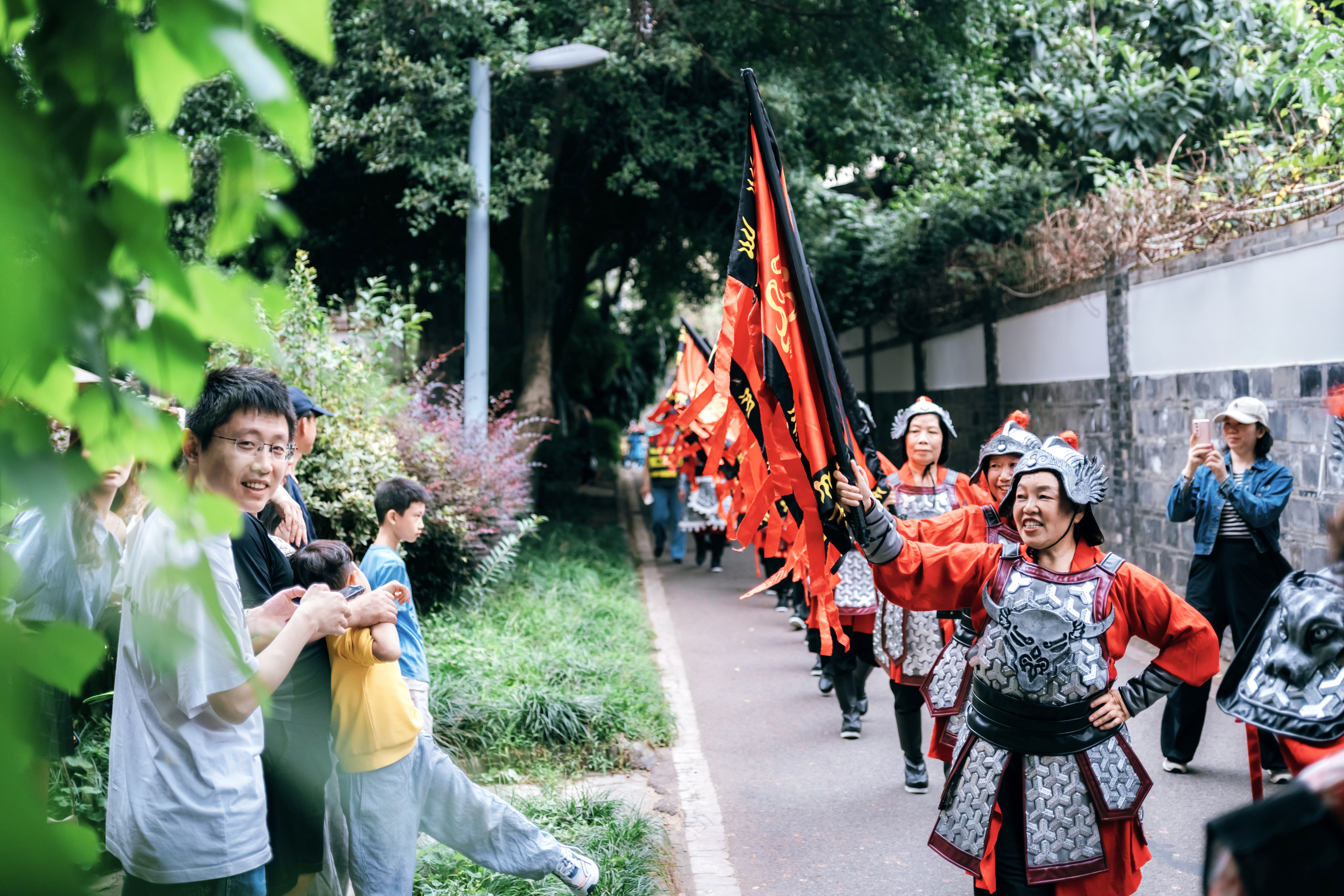 10月4日,成都市高新玉林的街头,上演了一场传统与潮流、乡土与国际的奇妙邂逅。来自新津的古家社区“火牛阵”表演队,将原本气势恢宏的广场乐舞,化作充满烟火气的街头巡游。