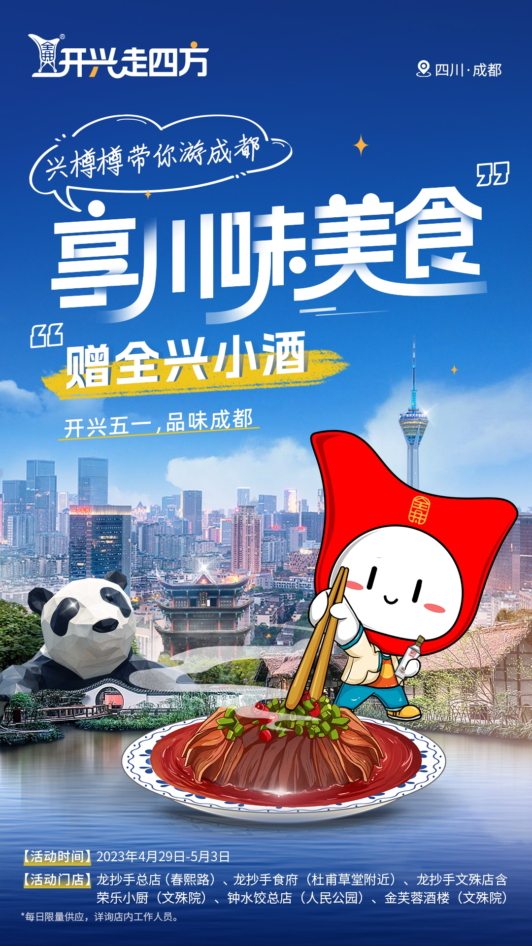 2023年4月29日-5月3日期间,消费者在成都指定门店消费经典菜品“夫妻肺片”,将获得全兴大曲回味经典酒一瓶。
